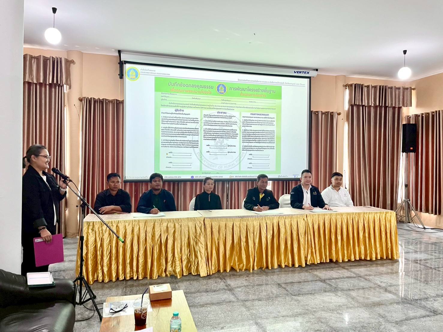 นอกจากนี้ เพื่อให้การดำเนินงานของโครงการฯ สอดคล้องกับความต้องการ และเป็นประโยชน์ต่อประชาชนในพื้นที่ให้มากที่สุด ในช่วงก่อนดำเนินการก่อสร้าง ทช. จึงได้มีการจัดประชุมการมีส่วนร่วมภาคประชาชน ครั้งที่ 1 และลงนามบันทึกความร่วมมือ 3 ฝ่าย (MOU) ระหว่าง ทช. ผู้รับจ้าง และผู้แทนประชาชนในพื้นที่ ซึ่งได้มีการนำเสนอความเป็นมา ลักษณะของโครงการ ขั้นตอนการดำเนินงาน และรายงานผลการดำเนินงาน พร้อมทั้งได้มีการตอบข้อซักถาม รับฟังข้อเสนอแนะ ความคิดเห็นจากผู้นำชุมชน ประชาชน และหน่วยงานราชการที่เกี่ยวข้อง เมื่อวันพุธที่ 19 พฤศจิกายน 2568 ณ ห้องประชุมสวนสาธารณะหนองแค อำเภอหล่มสัก จังหวัดเพชรบูรณ์