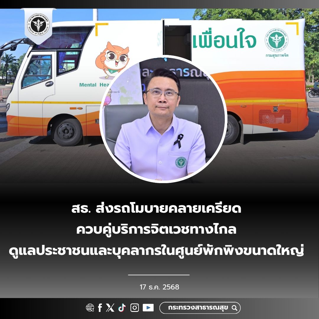 กระทรวงสาธารณสุข ส่งรถโมบายคลายเครียดดูแลสุขภาพจิตประชาชนและบุคลากรการแพทย์ที่ศูนย์พักพิงขนาดใหญ่ 1,000 -3,000 คน ควบคู่บริการตรวจจิตเวชทางไกล เพื่อดูแลกลุ่มเสี่ยงอย่างต่อเนื่อง พร้อมย้ำเรื่องการอุปโภค บริโภคน้ำสะอาด และอาหารที่อุ่นร้อน สวมหน้ากากอนามัย ล้างมือสม่ำเสมอ และหลีกเลี่ยงการสัมผัสผู้ป่วยที่มีอาการระบบทางเดินหายใจ