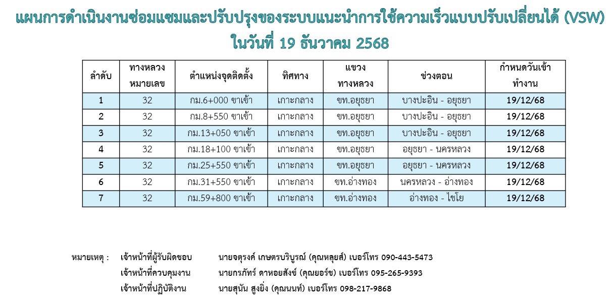 เพื่อดำเนินการติดตั้งเสาโครงสร้างป้าย VMS บนทางหลวงหมายเลข 32 ทางหลัก 1 ช่องจราจร ด้านชิดเกาะกลาง ตั้งแต่ กม.5+000 ขาเข้า ถึง กม.60+000 ขาเข้า เป็นช่วง ๆ