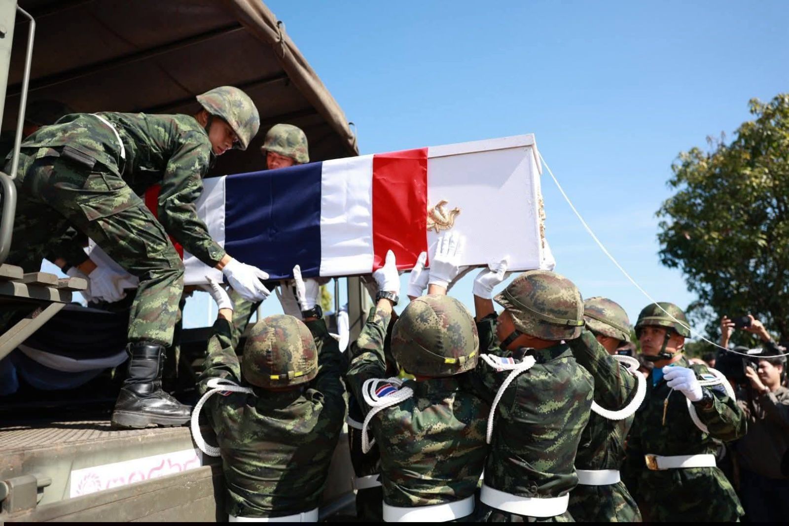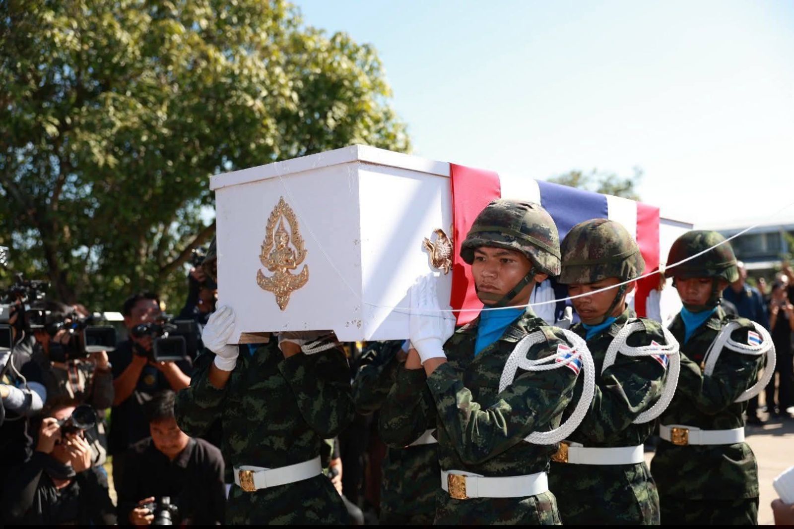 วันนี้ 21 ธันวาคม 2568 ณ โรงพยาบาลค่ายวีรวัฒน์โยธิน จังหวัดสุรินทร์ นายอนุทิน ชาญวีรกูล นายกรัฐมนตรี และรัฐมนตรีว่าการกระทรวงมหาดไทย เป็นประธานในพิธีส่งศพทหารกล้า จากสมรภูมิ “เนิน 350” กลับสู่มาตุภูมิและอ้อมกอดของครอบครัวด้วยเกียรติยศสูงสุดของนักรบผู้เสียสละ จ่าสิบเอก สำเริง คลังประโคน และ พลทหาร ภานุพัฒน์ เสาร์สา