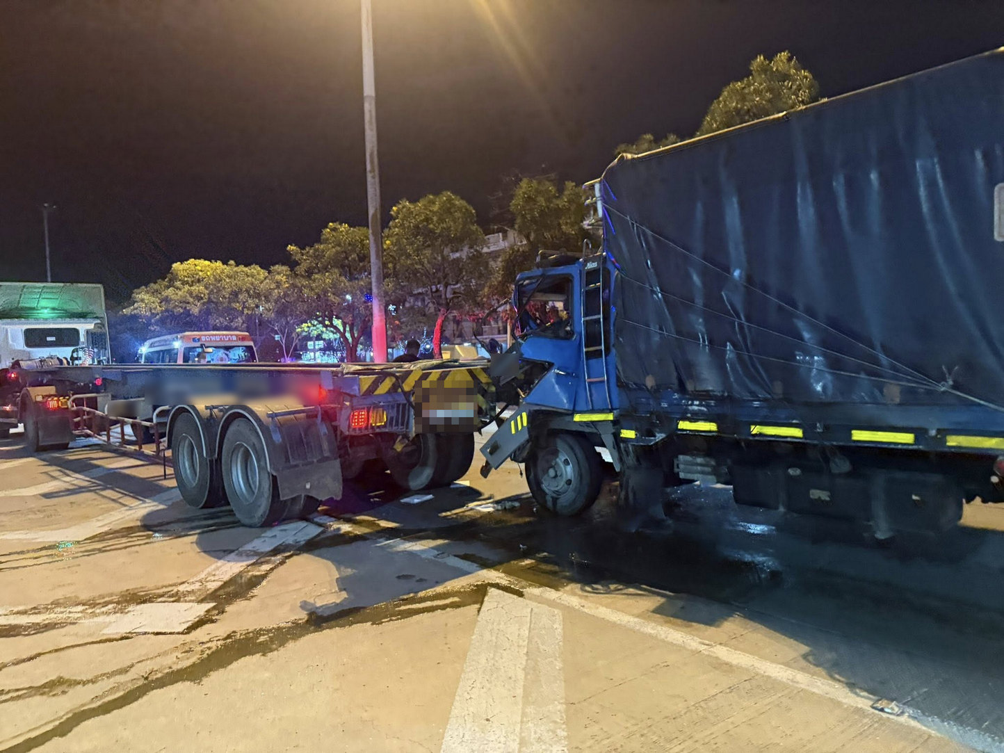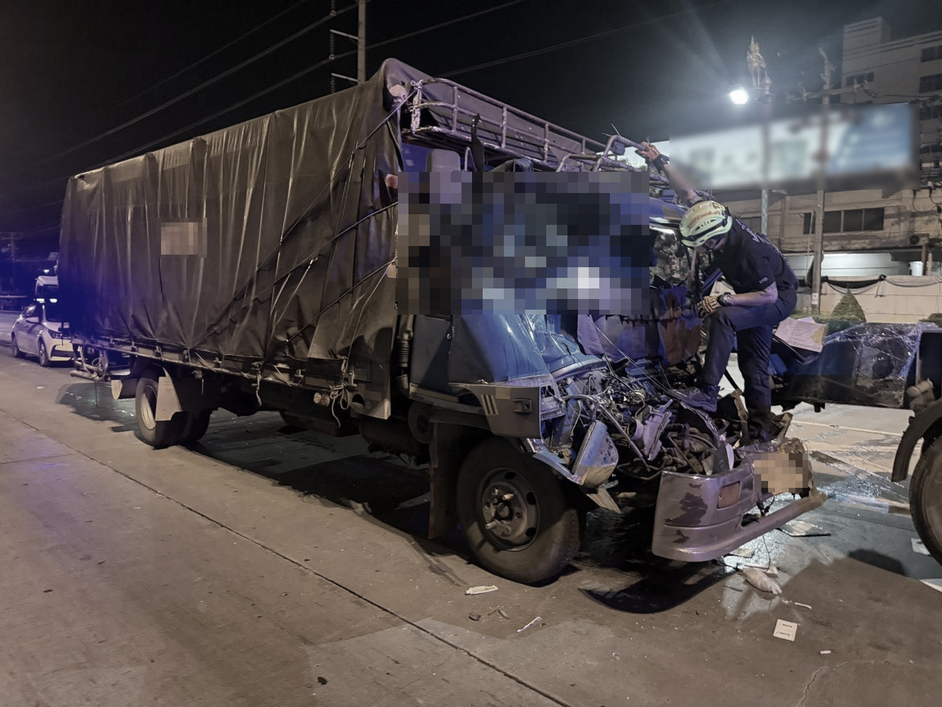 รถบรรทุก 6 ล้อชนกับรถเทรลเลอร์กลางถนนกิ่งแก้ว มีผู้เสียชีวิตร่างติดค้างอยู่ภายในยานพาหนะ จ.สมุทรปราการ