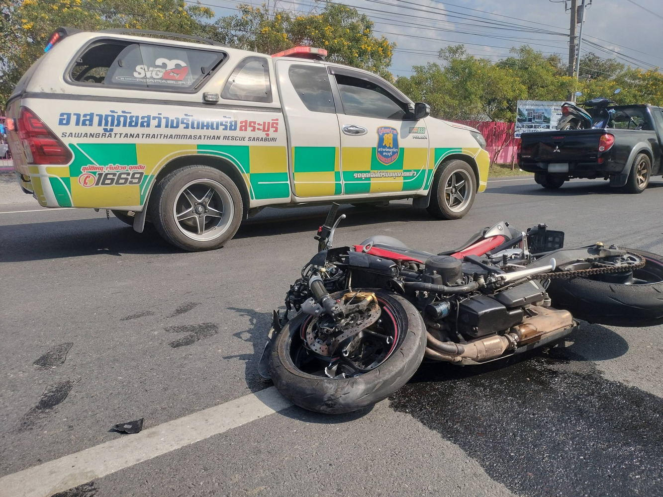 รถบิ๊กไบค์ชนกับรถจักรยานยนต์ กลางถนนเลียบคลอง เสียชีวิต 2 รายในที่เกิดเหตุและที่โรงพยาบาล และมีผู้บาดเจ็บสาหัสอีก 1 ราย จ.สระบุรี