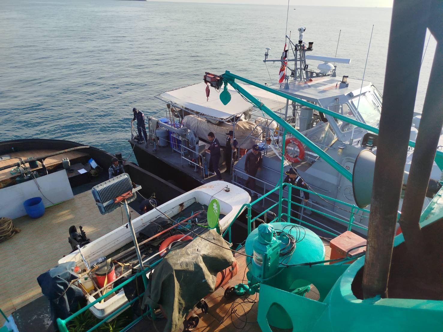 โดยบูรณาการร่วมกับหน่วยงานที่เกี่ยวข้อง ประกอบด้วย หมวดเรือลาดตระเวนชายแดน สถานีตำรวจน้ำแหลมงอบ สำนักงานเจ้าท่าภูมิภาคสาขาตราด ด่านศุลกากรจังหวัดตราด และสำนักงานสรรพสามิตพื้นที่ตราด ห่วงระหว่างวันที่ 24–28 ธ.ค.68 ได้เข้าตรวจสอบกลุ่มเรือยนต์ลากจูง พร้อมเรือพ่วงสินค้าที่เดินทางออกจากท่าเรือแหลมฉบัง และจอดทิ้งสมอบริเวณพื้นที่เกาะช้างใต้ จังหวัดตราด