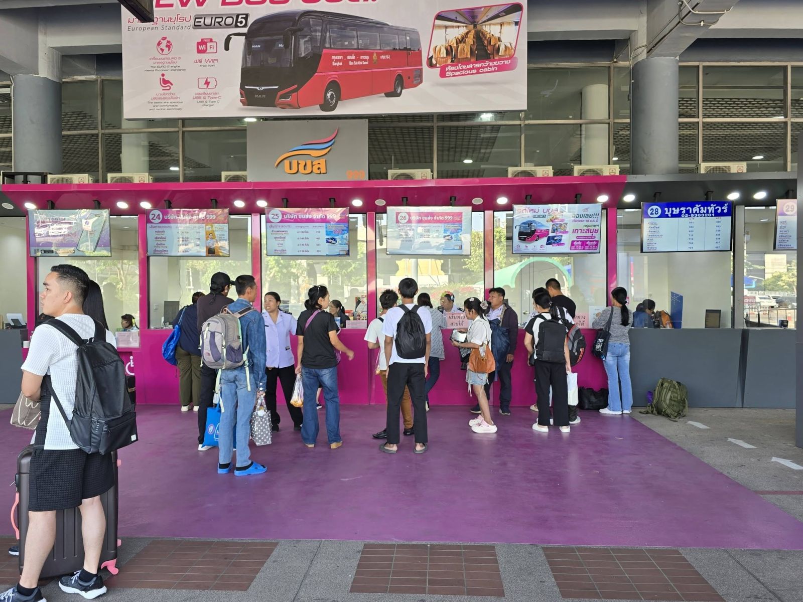 สำหรับผู้โดยสารที่จองตั๋ว บขส. ล่วงหน้า ในเส้นทางภาคเหนือและภาคตะวันออกเฉียงเหนือ (อีสาน) ตั้งแต่เที่ยวเวลา 18.00 น. เป็นต้นไป ให้ตรวจสอบข้อมูลการเดินทาง และจุดขึ้นรถโดยสาร ที่ระบุในตั๋วโดยสาร โดยวันนี้ (30 ธันวาคม 2568) รถโดยสาร บขส. จะออกที่สถานีกลางกรุงเทพอภิวัฒน์ ประตู 2 และรถเสริม ออกที่สถานีขนส่งฯ หมอชิต 2 รวมทั้งขอให้เผื่อเวลาเดินทางมาขึ้นรถ อย่างน้อย 1 ชั่วโมง เพื่อหลีกเลี่ยงการจราจรที่ติดขัดด้วย
