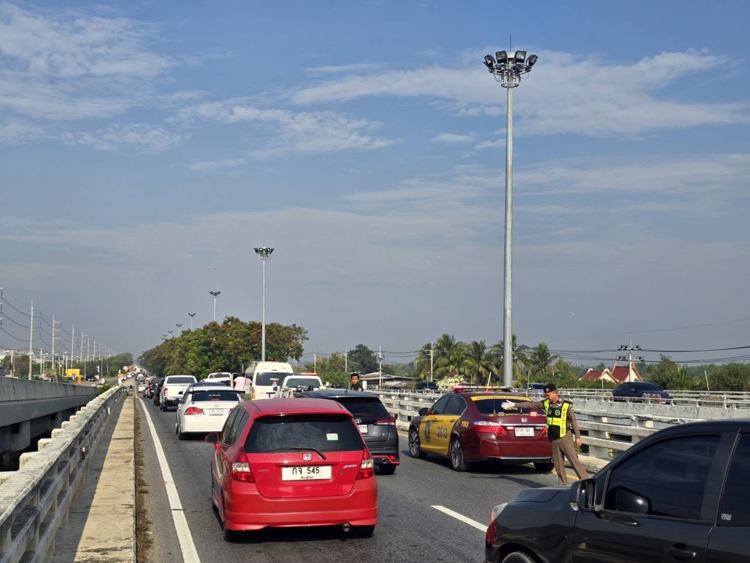 เป็นเหตุรถยนต์ชนท้าย จำนวน 5 คัน บาดเจ็บเล็กน้อยหญิง 1 ราย กีดขวางช่องทางขวา 1 ช่องทาง การจราจรเคลื่อนตัวได้ช้า