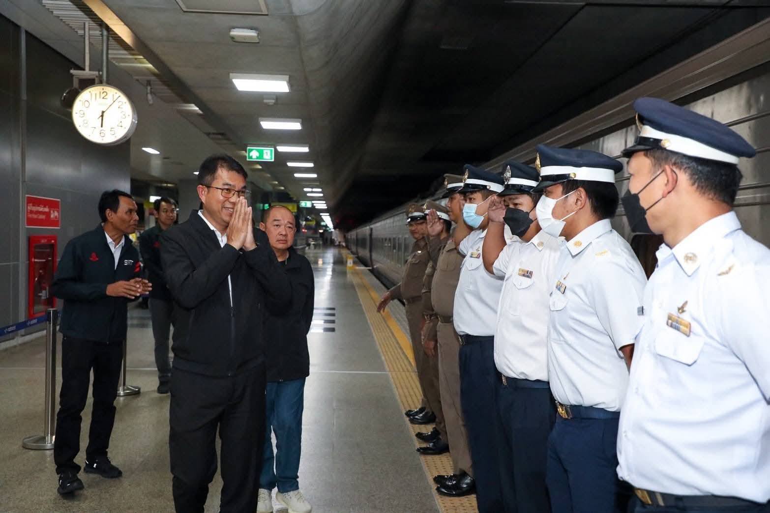 ขบวนรถทางไกล เพื่อติดตามการทำงานตามมาตรการด้านความปลอดภัยอย่างใกล้ชิด ให้เป็นไปอย่างมีประสิทธิภาพ พร้อมได้กำชับพนักงานด้านปฏิบัติการให้ดูแลอำนวยความสะดวกผู้โดยสารทุกคนให้กลับบ้านด้วยความปลอดภัย ตามนโยบาย “H.N.Y 2569 – Happiness of All, Network of Care, Year of Safety” ของนายพิพัฒน์ รัชกิจประการ รองนายกรัฐมนตรีและรัฐมนตรีว่าการกระทรวงคมนาคม