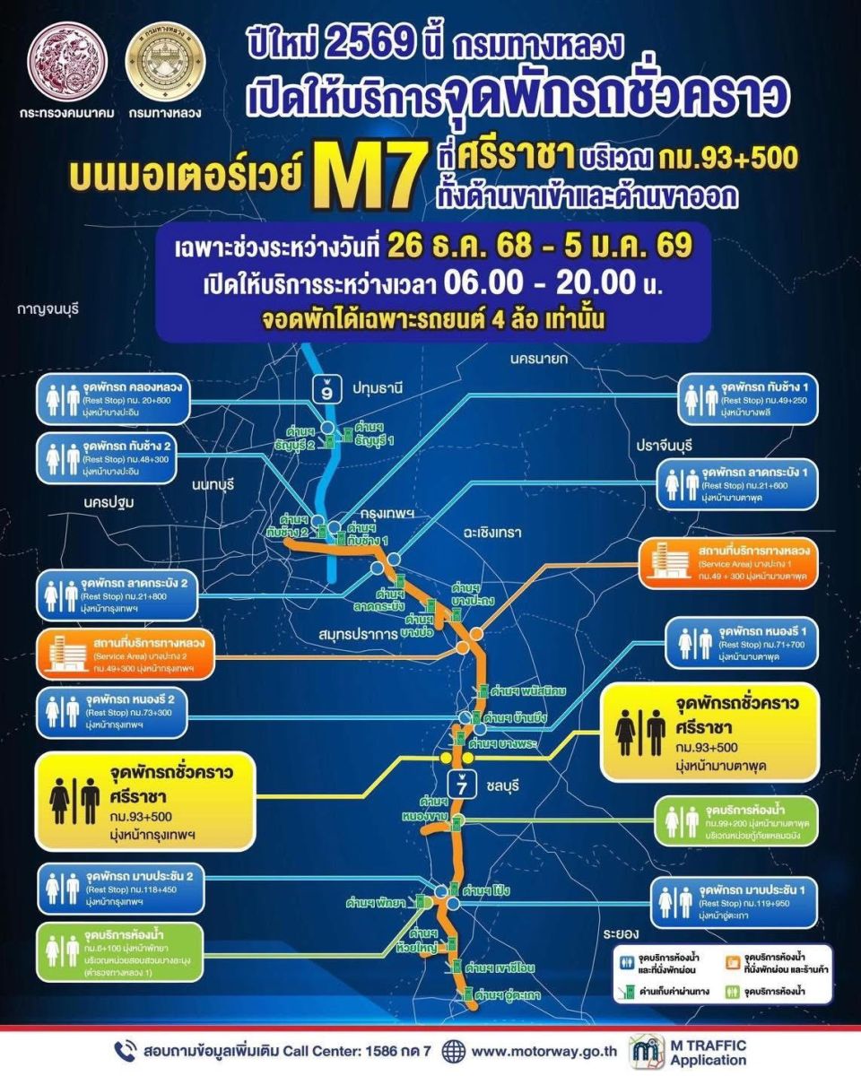 #กรมทางหลวง #มอเตอร์เวย์ #M7 #M9 #จุดพักรถศรีราชา #ปีใหม่2569 #กองทางหลวงพิเศษระหว่างเมือง
