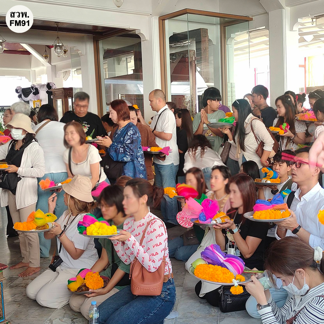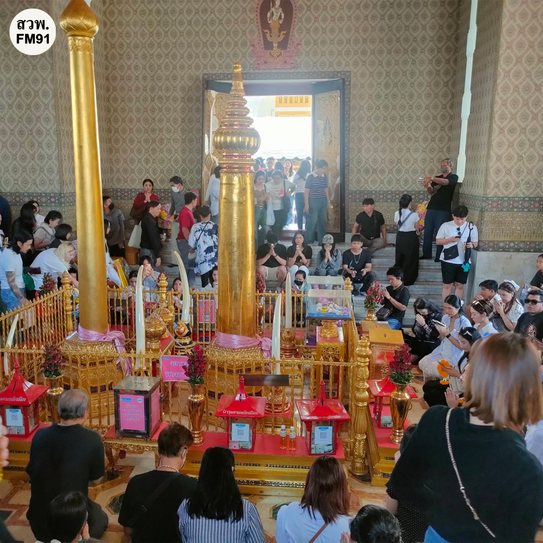 โดยบริเวณบริเวณศาลหลักเมืองกรุงเทพพบว่า ประชาชนถือพานเครื่องสักการะ พวงมาลัย ดอกไม้ ธูปเทียน น้ำมัน ผ้าสามสี และเครื่องบูชา เพื่อเตรียมถวายสิ่งศักดิ์สิทธิ์ศาลหลักเมืองกรุงเทพมหานคร บรรยากาศค่อนข้างหนาแน่น ทำให้การสัญจรไปยังจุดต่าง ๆ ภายในศาลมีความติดขัดบ้างเป็นบางช่วง มีเจ้าหน้าที่เทศกิจคอยอำนวยความสะดวกและจัดระเบียบให้พี่น้องประชาชนอย่างต่อเนื่อง