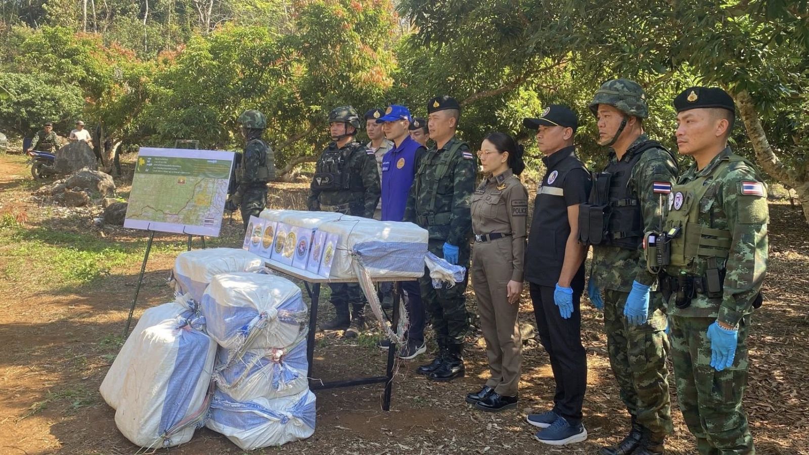 เมื่อวันที่2 มกราคม 2569 เวลา 05.30 น. หน่วยเฉพาะกิจ ทัพเจ้าตาก กองกำลังผาเมือง จัดกำลังพล จำนวน 2 ชุดปฏิบัติการ ทำการเฝ้าตรวจเพื่อป้องกันและสกัดกั้นการกระทำผิดตาม พ.ร.บ. ประมวลกฎหมายยาเสพติด บริเวณ บ้านผาหมี หมู่ 6 ตำบลเวียงพางคำ อำเภอแม่สาย จังหวัดเชียงราย ตรวจพบกลุ่มบุคคลต้องสงสัยสะพายกระสอบดัดแปลง ประมาณ 10 ถึง 15 คน