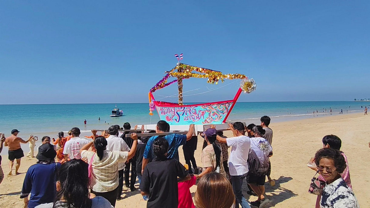 สืบสานประเพณี ทำบุญลอยเรือลงทะเลสะเดาะเคราะห์ รับขวัญวันขึ้นปีใหม่ที่หาดบางสัก จ.พังงา