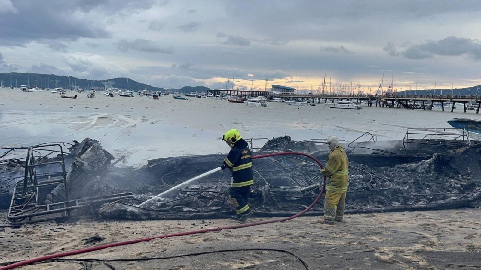 ไฟไหม้เรือสปีดโบ๊ทอ่าวฉลอง เสียหายรวม 23 ลำ ผู้ว่าฯ ภูเก็ต สั่งตรวจสอบหาสาเหตุเพลิงไหม้เรืออย่างเร่งด่วน พร้อมให้ตรวจสอบกล้องวงจรปิดทั้งหมด
