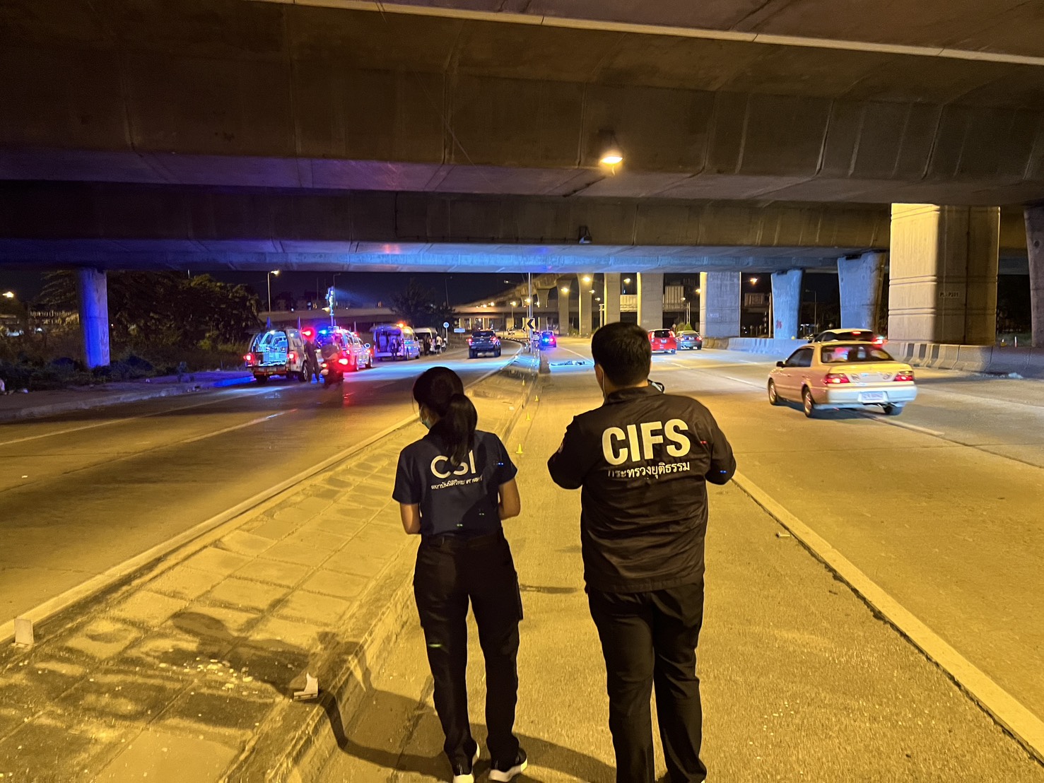 ทางด้านเจ้าหน้าที่ตำรวจกล่าวว่าเบื้องต้นได้ทำการบันทึกภาพที่เกิดเหตุไว้ โดยหลังจากนี้จะตรวจสอบจากกล้องวงจรปิดใกล้จุดเกิดเหตุอีกครั้ง พร้อมทั้งจะเร่งทำการประสานติดตามญาติ ส่วนผู้เสียชีวิตและมอบให้ทางเจ้าหน้าที่มูลนิธิร่วมกตัญญูนำส่งสถาบันนิติวิทยาศาสตร์เพื่อชันสูตรต่อไป