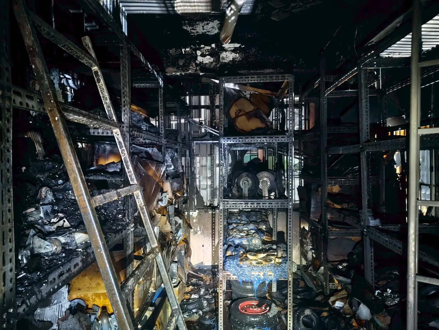 ลักษณะที่เกิดเหตุเป็นอาคารพาณิชย์ 4 ชั้นครึ่ง ประกอบกิจการ ผลิตและจัดจำหน่ายลูกล้อรถเข็น ต้นเพลิงเกิดขึ้นที่ชั้น 2 เพลิงลุกไหม้เสียหายชั้นที่ 2, 3 และชั้นที่ 4 เสียหายทั้งหมด พื้นที่เพลิงไหม้เสียหายโดยประมาณ192 ตารางเมตร รถดับเพลิงใช้น้ำทำการดับเพลิงสงบ