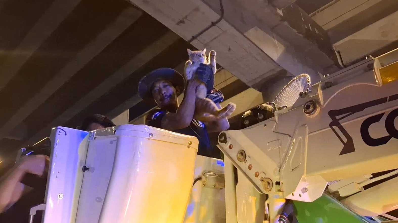 ส่วน ผู้ที่พบแมวเป็นคนแรก (ไม่ประสงค์เปิดหน้า) เล่าว่า ตนเองได้ยินเสียง น้องแมว มาแล้วประมาณ 2 วัน ก็เดินหากันแต่ก็ไม่เจอ โดยวันนี้ได้เงยหน้าขึ้นไปบนสะพานก็พบกับน้องแมว โดยที่ตนเอง พบ ว่าน้องแมวนั้นนั่งอยู่บนตอม่อ โดยเมื่อตอนเช้าที่เจอตนเองปืนขึ้นไปดูก่อนแต่ไม่เจอเพราะปืนผิดเสา ช่วงเย็นจึงได้แจ้งเจ้าหน้าที่ประสานงานเข้าช่วยเหลือ
