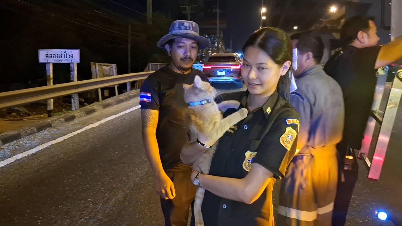 เมื่อเวลา 19.00 น. วันที่ 11 มกราคม 2569 เจ้าหน้าที่บรรเทาสาธารณภัย เทศบาลตำบลด่านสำโรง จังหวัดสมุทรปราการ รับแจ้งจากประชาชนว่าพบแมวติดอยู่บนเสาตอม่อสะพานข้ามแยกศรีเทพา ถนนศรีนครินทร์ ตำบลเทพารักษ์ อำเภอเมือง จังหวัดสมุทรปราการ ซึ่งมีความสูงมากกว่า 10 เมตร จึงนำรถกระเช้าเข้าทำการช่วยเหลือ