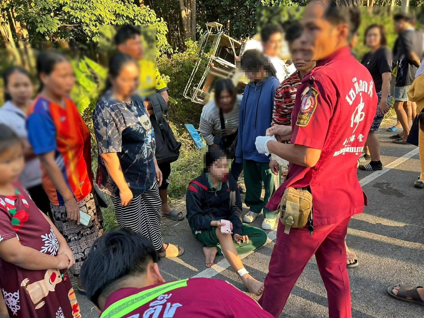 รถสองแถวรับ-ส่งนักเรียน เสียหลักพลิกลงข้างทาง นักเรียนบาดเจ็บหลายราย โชคดีอาการไม่สาหัส จ.พิษณุโลก
