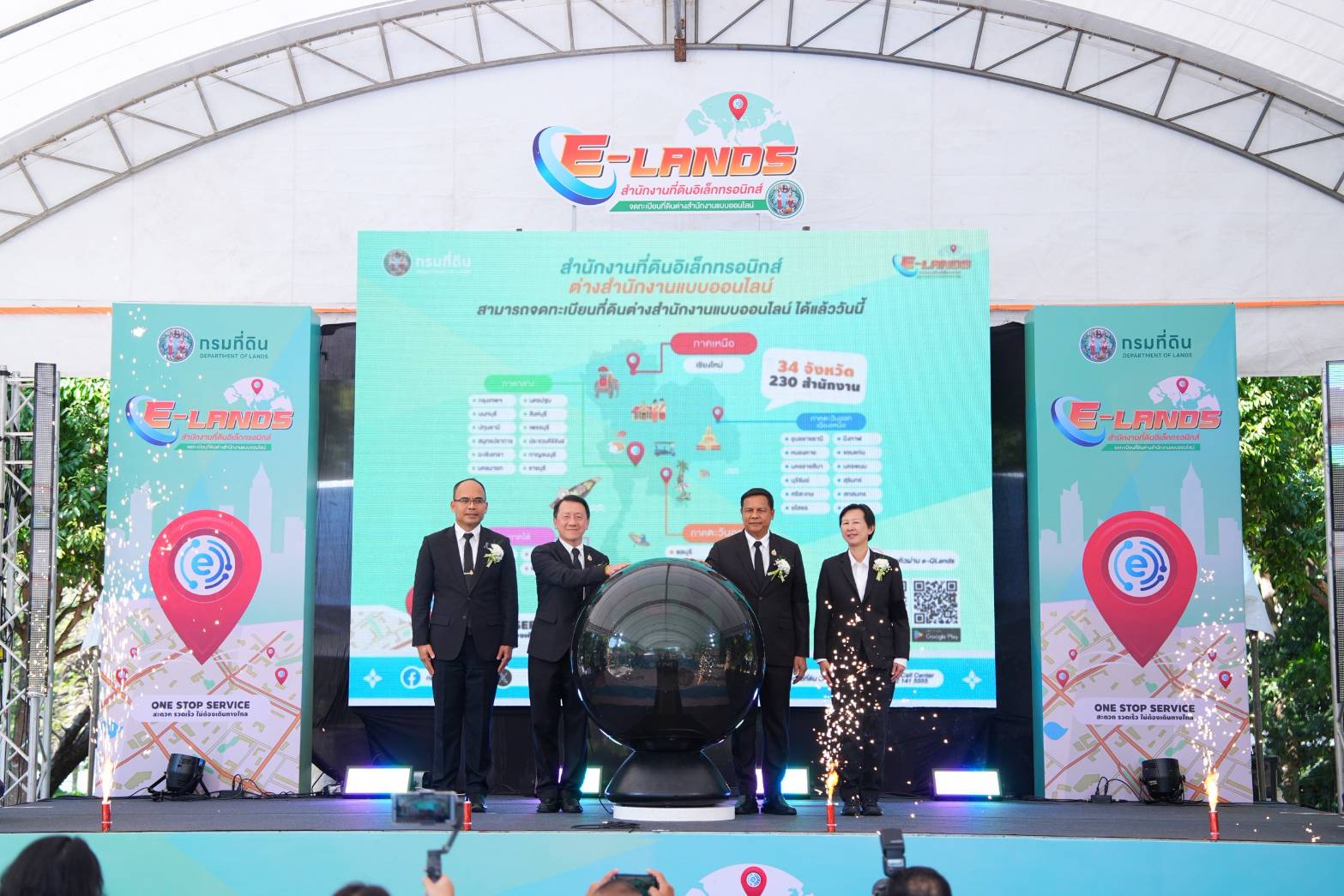 รองอธิบดีกรมที่ดิน กล่าวเพิ่มเติมว่า กรมที่ดิน มีสำนักงานที่ดินจังหวัด สาขา และส่วนแยก ในการให้บริการประชาชน ทั้งหมด 462 สำนักงาน ซึ่งปัจจุบันนำเข้าสารบบได้แล้วกว่า 20 จังหวัด และเปิดเป็นสำนักงานที่ดินอิเล็กทรอนิกส์ต่างสำนักงานแบบออนไลน์ ได้แล้ว 20 จังหวัด 140 สำนักงาน ซึ่งในวันนี้เป็นการเปิดเพิ่มพร้อมกันอีก 14 จังหวัด ได้แก่ จังหวัดภูเก็ต กระบี่ สุราษฎร์ธานี พังงา ประจวบคีรีขันธ์ กาญจนบุรี ราชบุรี นครพนม บุรีรัมย์ ศรีสะเกษ สกลนคร ยโสธร มุกดาหาร และจังหวัดสุรินทร์ รวมทั้งหมด 90 สำนักงาน ซึ่งจะทำให้ประชาชนไม่จำเป็นต้องเดินทางไปยังสำนักงานที่ดินที่ที่ดินนั้นตั้งอยู่ แต่ยังสามารถจดทะเบียนต่างสำนักงานแบบออนไลน์ได้ทั่วทั้ง 34 จังหวัดที่เปิดให้บริการแล้ว ได้แก่ กรุงเทพมหานคร จังหวัดอุบลราชธานี บึงกาฬ หนองคาย เชียงใหม่ สงขลา สิงห์บุรี ขอนแก่น เพชรบุรี นนทบุรี ปทุมธานี สมุทรปราการ ฉะเชิงเทรา นครนายก นครปฐม ชลบุรี ระยอง จันทบุรี ตราด นครราชสีมา ภูเก็ต กระบี่ สุราษฎร์ธานี พังงา ประจวบคีรีขันธ์ กาญจนบุรี ราชบุรี นครพนม บุรีรัมย์ ศรีสะเกษ สกลนคร ยโสธร มุกดาหาร และจังหวัดสุรินทร์ รวมทั้งสิ้นกว่า 230 สำนักงาน