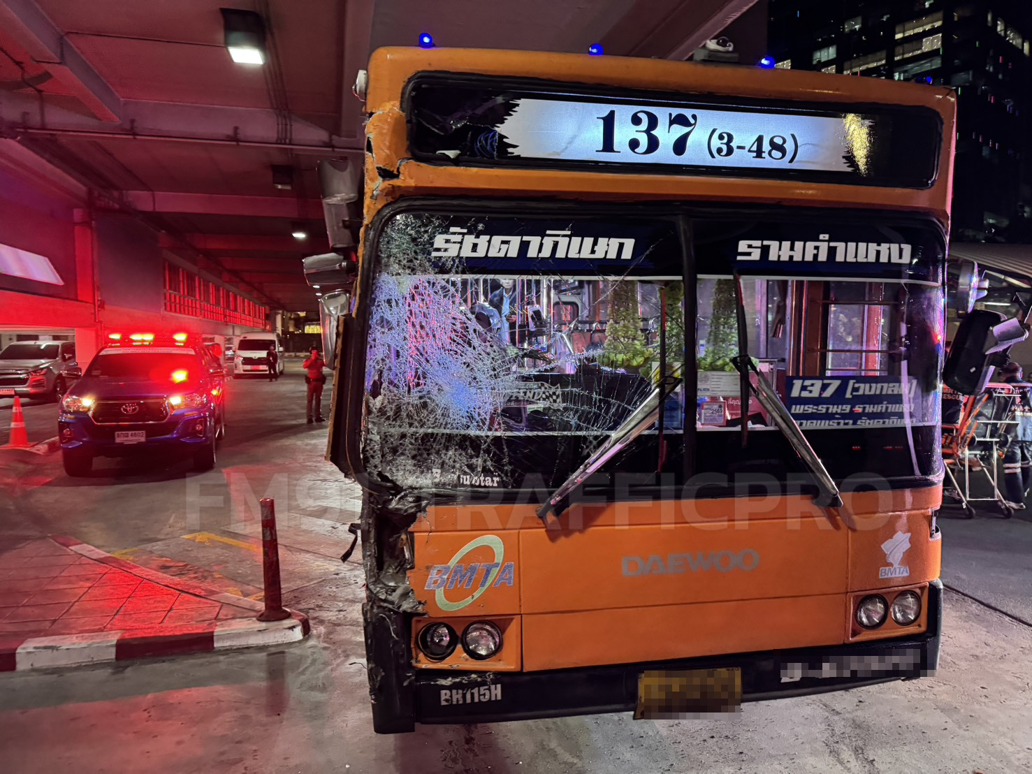 รับแจ้งจากคุณณัฐพล เจ้าหน้าที่อาสากู้ภัยป่อเต็กตึ๊ง รหัสกู้ภัยพหล 001 รายงานเหตุเกิดเมื่อเวลาประมาณ 19.20 น. (13 ม.ค.69) ที่เกิดเหตุบริเวณใต้อาคารจอดรถ MRT ศูนย์วัฒนธรรม เป็นรถโดยสารประจำทางสาย 137 วิ่งระหว่างรัชดาภิเษก-รามคำแหง ขณะกำลังออกจากอู่ เกิดพุ่งชน รถดับเพลิงของกู้ภัยที่จอดอยู่ เบื้องต้นคนขับให้ข้อมูลว่า เกิดคันเร่งค้าง ทำให้เสียการควบคุม และพุ่งชนรถดับเพลิงดังกล่าว ส่งผลให้มีผู้ได้รับบาดเจ็บทั้งหมด 11 ราย เป็นพนักงานขับรถ , พนักงานเก็บสตางค์ และผู้โดยสารรถประจำทาง กู้ภัยป่อเต็กตึ๊ง ให้การช่วยเหลือนำส่งโรงพยาบาลเพชรเวช , โรงพยาบาลพญาไท พหลโยธิน และโรงพยาบาลคามิลเลี่ยน พื้นที่รับผิดชอบ สน.ห้วยขวาง