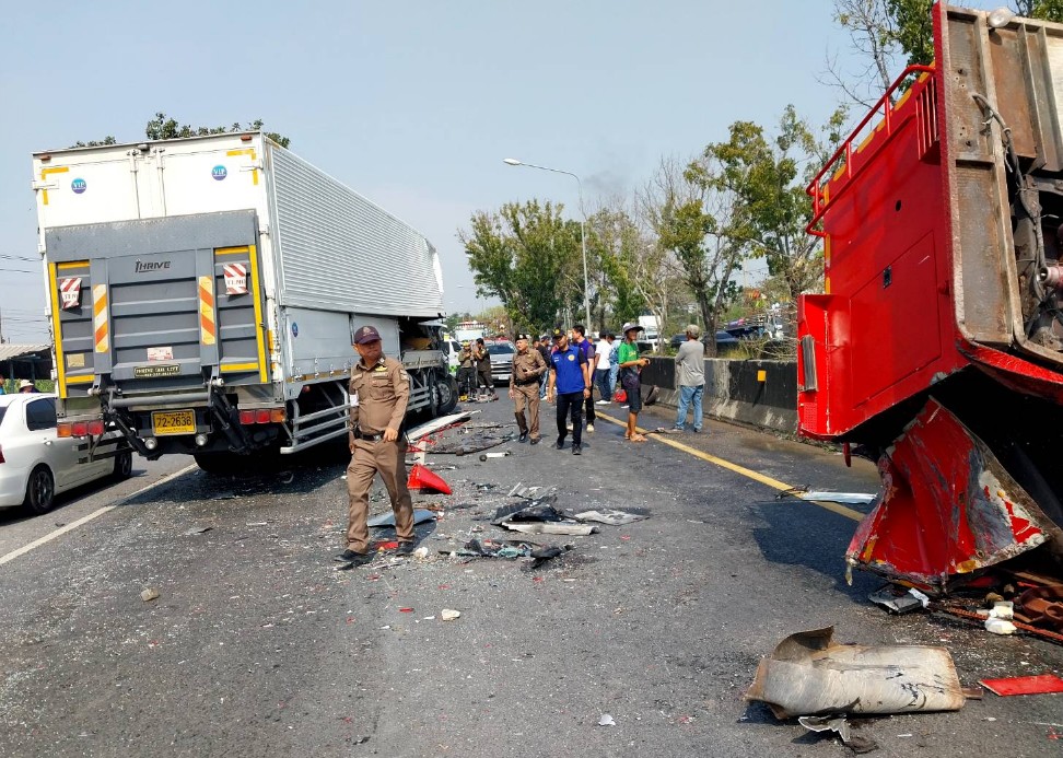 ในที่เกิดเหตุพบผู้บาดเจ็บ จำนวน 3 ราย เสียชีวิต 1 รายติดภายใน กู้ภัยเร่งดำเนินการใช้เครื่องมือตัดถ่าง การจราจรติดขัด ท้ายแถวสะสม ประมาณ 4 กม.