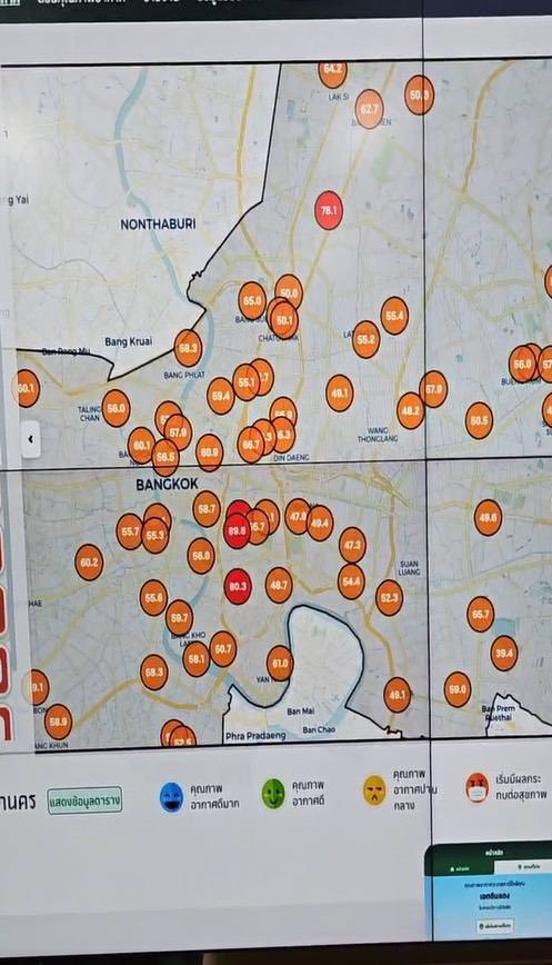 วันที่ 14 ม.ค. 69 นายชัชชาติ สิทธิพันธุ์ ผู้ว่าราชการกรุงเทพมหานคร ติดตามสถานการณ์ฝุ่น PM2.5 ในพื้นที่กรุงเทพฯ ณ ศูนย์ข้อมูลคุณภาพอากาศกรุงเทพมหานคร สำนักสิ่งแวดล้อม เขตดินแดง โดยกล่าวอัปเดตสถานการณ์ว่า วันนี้เป็นวันที่ กทม. ค่าฝุ่น PM2.5 น่าจะสูงที่สุดของปีนี้ โดยค่าฝุ่นสีแดงซึ่งมีผลกระทบต่อสุขภาพพบใน 4 เขต อยู่ในเขตกรุงเทพฯ ชั้นในทั้งหมด ได้แก่ บางรัก ปทุมวัน สาทร และจตุจักร ค่าฝุ่นประมาณ 80 ไมโครกรัมต่อลูกบาศก์เมตร (มคก./ลบ.ม.) ส่วนพื้นที่อื่นอยู่ในระดับสีส้ม เริ่มมีผลกระทบต่อสุขภาพทุกเขต ขอให้ประชาชนดูแลสุขภาพ หากออกไปข้างนอกควรสวมหน้ากากป้องกัน PM2.5 ลดกิจกรรมและการอยู่ในที่แจ้ง