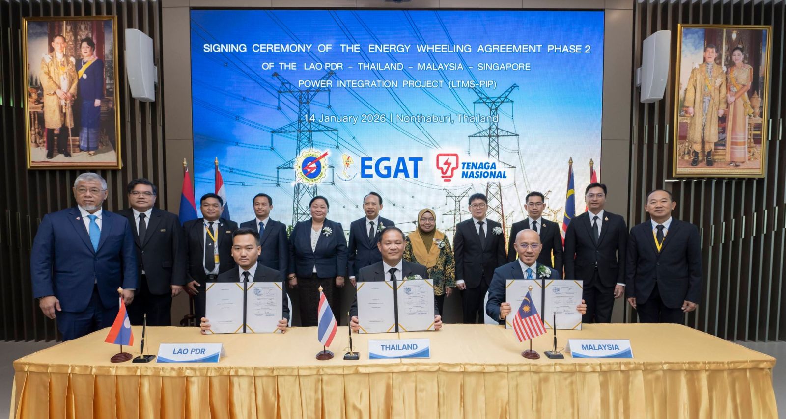 โดยมี ดร.ประเสริฐ สินสุขประเสริฐ ปลัดกระทรวงพลังงาน เป็นประธาน มีนายนรินทร์ เผ่าวณิช ผู้ว่าการ กฟผ. Mr. Souksavart Sosouphanh รองผู้อำนวยการรัฐวิสาหกิจไฟฟ้าลาว (EDL) และ Mr. Hasmarizal Hassan ประธานเจ้าหน้าที่ด้านโครงข่ายไฟฟ้า การไฟฟ้ามาเลเซีย (TNB) ร่วมพิธีลงนาม ณ อาคาร 50 ปี กฟผ. สำนักงานใหญ่ กฟผ. จ.นนทบุรี