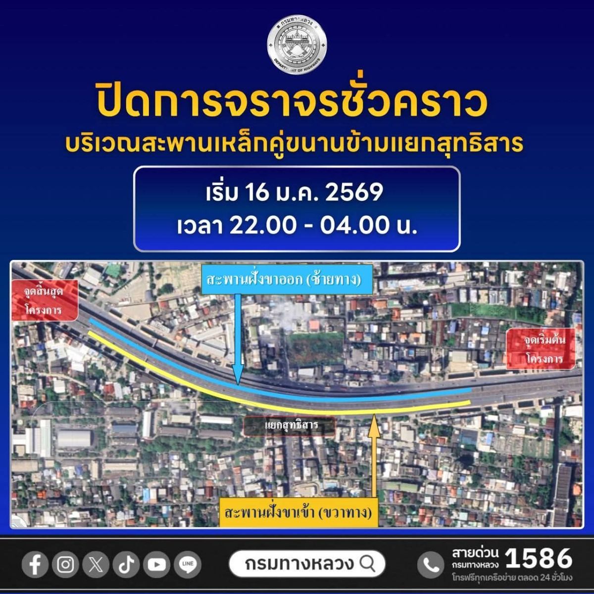 3. ปิดสะพานเหล็กคู่ขนานข้ามแยกสุทธิสาร