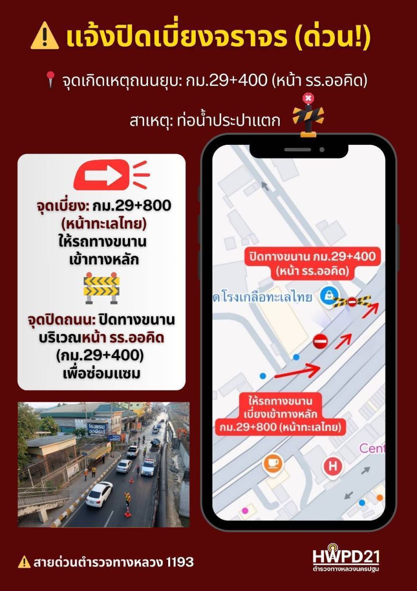 โดยล่าสุด ถ.พระราม 2 ขาออก มีการปิดการจราจรบริเวณ กม.28+000 ทุกคันเบี่ยงออกนอก เปิด กม.32 ใช้ทางได้ตามปกติ ส่วนขาเข้า ปิด กม.32+500 ทุกคันเบี่ยงออกนอก และเปิด กม.29+800 บังคับเบี่ยงเข้าใน