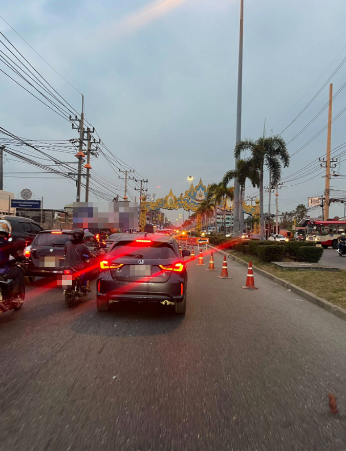 ติดหนักแต่เช้า! ถนนแพรกษา ขาออก เยื้องซอยเทศบาลบางปู 39 (ซอยบ่อดิน) มีงานซ่อมผิวการจราจร วางแบริเออร์ช่องทางขวาระยะทางยาว รถติดมาก ท้ายแถวสะสมตรงข้ามแม็คโคร ฟู้ดเซอร์วิส แพรกษา #รายงานจราจร #รถติด #FM91