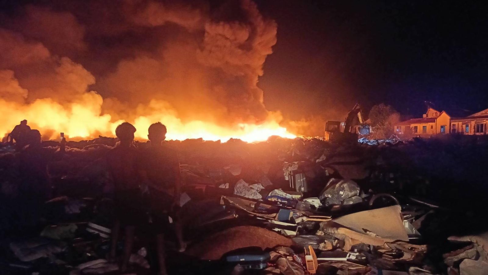 ไฟไหม้กองขยะขนาดใหญ่ ซอยสังฆประชา 9 เจ้าหน้าที่ระดมฉีดน้ำดับเพลิง