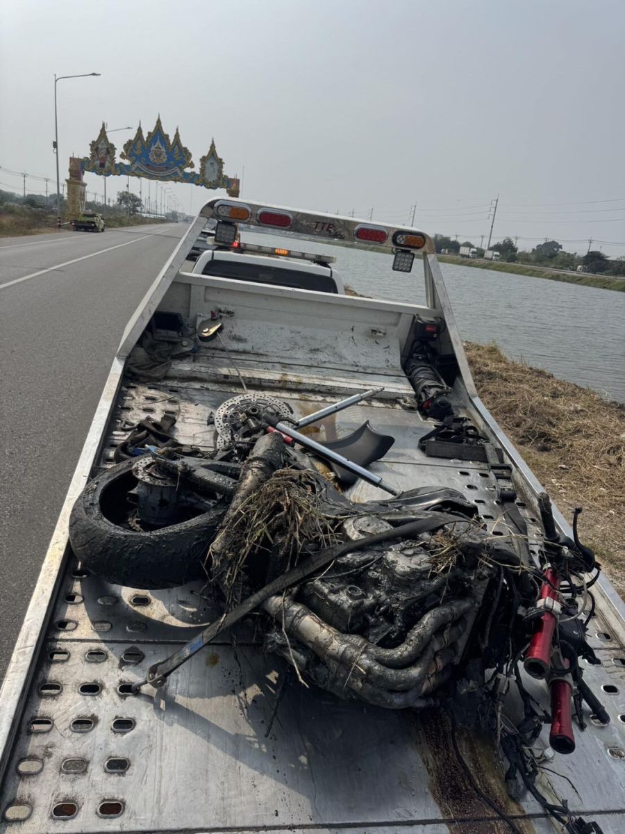 ที่เกิดเหตุ พบผู้เสียชีวิต 1 ราย ทราบต่อมา เป็นชายไทย อายุ 22 ปี สภาพศพนอนคว่ำหน้าอยู่ในน้ำใกล้ฝั่ง โดยพบเศษชิ้นส่วนรถจักรยานยนต์ แตกกระจัดกระจายอยู่บนพื้นถนน และในพงหญ้า ส่วนรถจักรยานยนต์จมอยู่ในคลอง จึงให้กู้ภัยฯนำขึ้นมาตรวจสอบ พบว่าเป็นรถจักรยานยนต์บิ๊กไบค์ คาวาซากิ ZX 10 R สีดำ ขนาด 1,000 ซีซี ในสภาพพังเสียหาย
