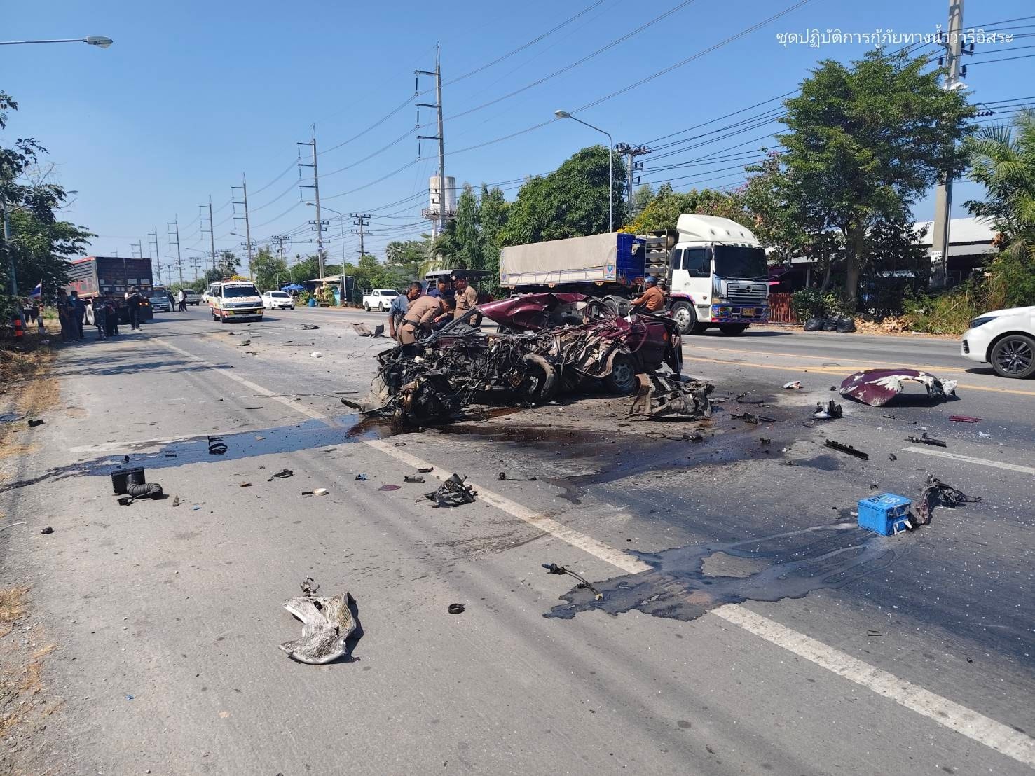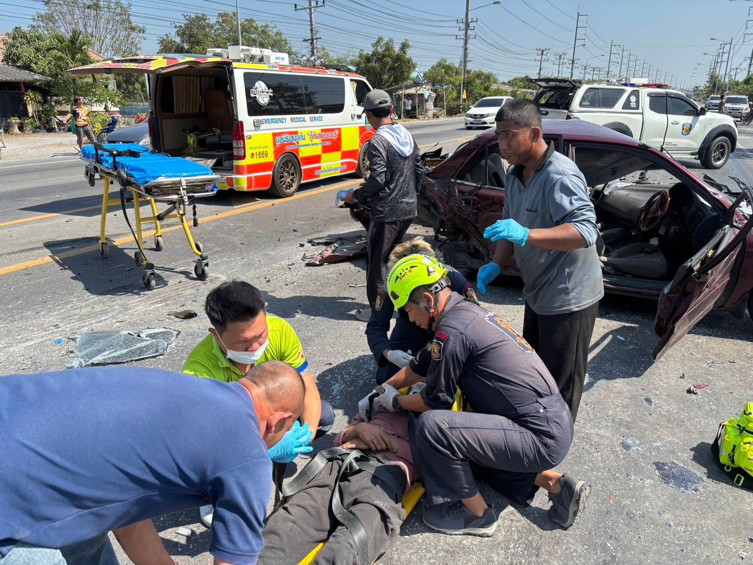 วันที่ 23 มกราคม 2569 เมื่อเวลา 12:20 น. ศูนย์มูลนิธิเสมอกันกู้ภัยสุพรรณบุรีออกตรวจสอบอุบัติเหตุ บริเวณใกล้เคียงปั๊ม PT ดอนกลาง อ.สองพี่น้อง จ.สุพรรณบุรี เบื้องต้นเป็นรถยนต์นั่งส่วนบุคคล เฉี่ยวชนกับรถสิบล้อจำนวน 2 คัน เบื้องต้นทำให้มีผู้ได้รับบาดเจ็บในที่เกิดเหตุเป็นชาย 1 รายอายุ 37 ปี มีแผลฉีกขาดบริเวณใต้คาง มีอาการเจ็บที่บริเวณศีรษะและหน้าอก จึงทำการปฐมพยาบาลเบื้องต้นในที่เกิดเหตุ และส่งต่อรถ EMS นำส่งโรงพยาบาลสมเด็จพระสังฆราชองค์ที่ 17 ต่อไป