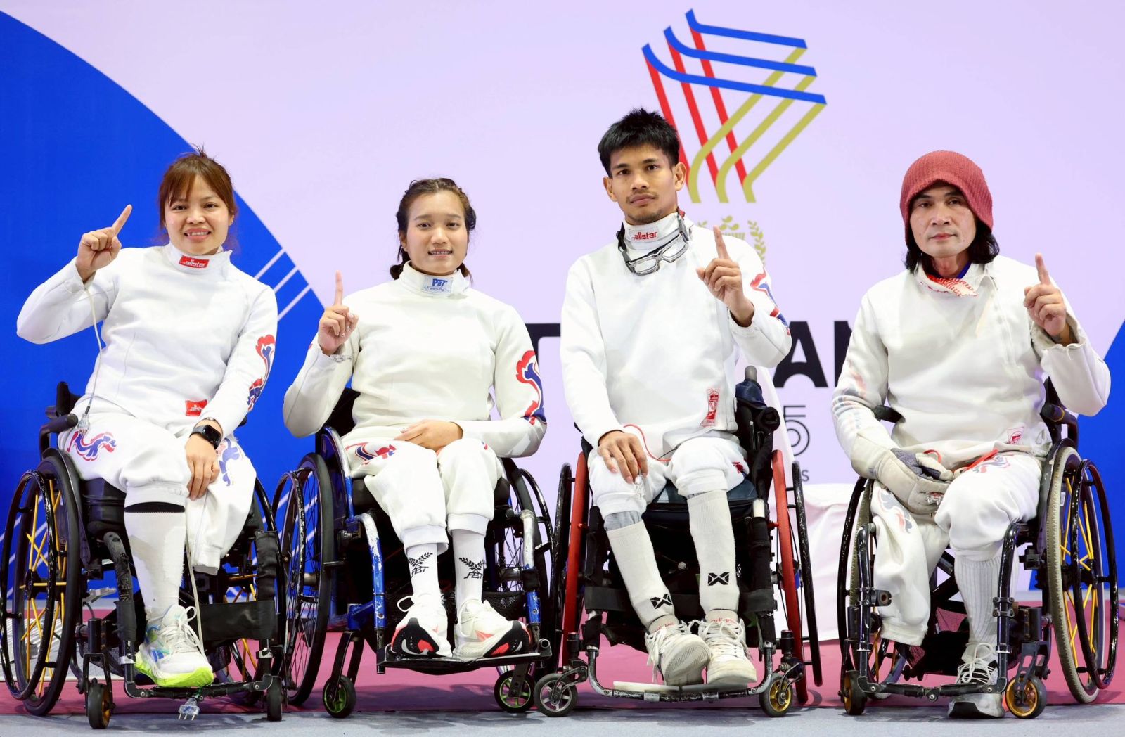 (ภาพ : ทีมวีลแชร์ฟันดาบ ประเภทเอเป้ ทีมผสม ทีมชาติไทย ขอบคุณภาพจาก กองประชาสัมพันธ์ กกท.)