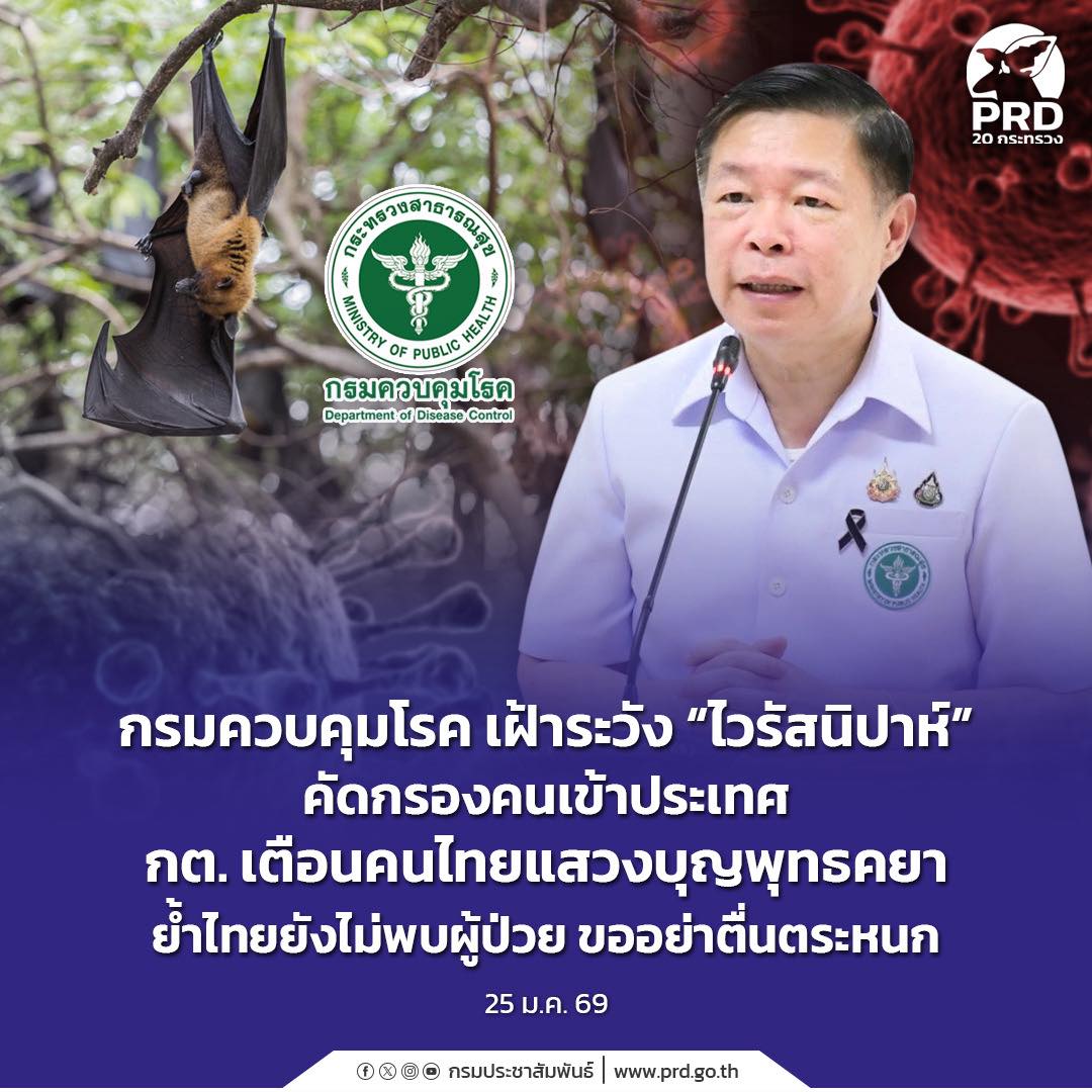 กรมควบคุมโรค เฝ้าระวัง “ไวรัสนิปาห์” คัดกรองคนเข้าประเทศ กต. เตือนคนไทยแสวงบุญพุทธคยา ย้ำไทยยังไม่พบผู้ป่วย ขออย่าตื่นตระหนก