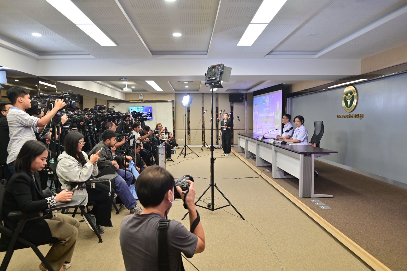 วันนี้ (26 มกราคม 2569) ที่ศูนย์แถลงข่าวกระทรวงสาธารณสุข จ.นนทบุรี นพ.โสภณ เอี่ยมศิริถาวร รองปลัดกระทรวงสาธารณสุขและโฆษกกระทรวงสาธารณสุข พร้อมด้วย พญ.จุไร วงศ์สวัสดิ์ นายแพทย์ทรงคุณวุฒิ โฆษกกรมควบคุมโรค แถลงข่าวประเด็น "โรคติดเชื้อไวรัสนิปาห์ (Nipah Virus Disease)" โดย นพ.โสภณกล่าวว่า กระทรวงสาธารณสุข โดยกรมควบคุมโรค ได้ติดตามการระบาดของโรคติดเชื้อไวรัสนิปาห์ในประเทศอินเดียอย่างใกล้ชิด ซึ่งสถานการณ์ยังไม่เปลี่ยนแปลงจากสัปดาห์ก่อน มีรายงานผู้ป่วยยืนยัน 2 รายเท่าเดิม เป็นบุคลากรทางการแพทย์ที่ทำงานโรงพยาบาลเดียวกันในเมือง Barasat รัฐเบงกอลตะวันตก ทั้งนี้ โรคติดเชื้อไวรัสนิปาห์ เป็น 1 ใน 13 โรคติดต่ออันตรายตาม พ.ร.บ.โรคติดต่อต่อ พ.ศ. 2558 ต้องรายงานเมื่อพบผู้ป่วยภายใน 3 ชั่วโมง ซึ่งจนถึงปัจจุบันนี้ยังไม่เคยพบผู้ป่วยในประเทศไทย มีรายงานผู้ป่วยจากต่างประเทศเท่านั้น ล่าสุดคือรัฐเบงกอลตะวันตก ซึ่งแม้จะอยู่ไกลประเทศไทยแต่มีเที่ยวบินตรงมาลงที่สนามบินสุวรรณภูมิ ดอนเมือง และภูเก็ต กรมควบคุมโรคจึงมีการเฝ้าระวังคัดกรองผู้ที่เดินทางมาจากพื้นที่ดังกล่าว ซึ่งสะท้อนถึงมาตรการความพร้อมรับมือของประเทศไทย และยังคงติดตามสถานการณ์ใกล้ชิดร่วมกับองค์การอนามัยโลก ขณะที่กรมวิทยาศาสตร์การแพทย์ ได้เตรียมความพร้อมเรื่องการตรวจทางห้องปฏิบัติการให้รู้ผลภายใน 6-8 ชั่วโมง และกรมการแพทย์ได้ประชุมผู้เชี่ยวชาญเพื่อปรับปรุงมาตรฐานแนวทางการรักษาผู้ป่วยจากเชื้อไวรัสนิปาห์แล้วเช่นกัน