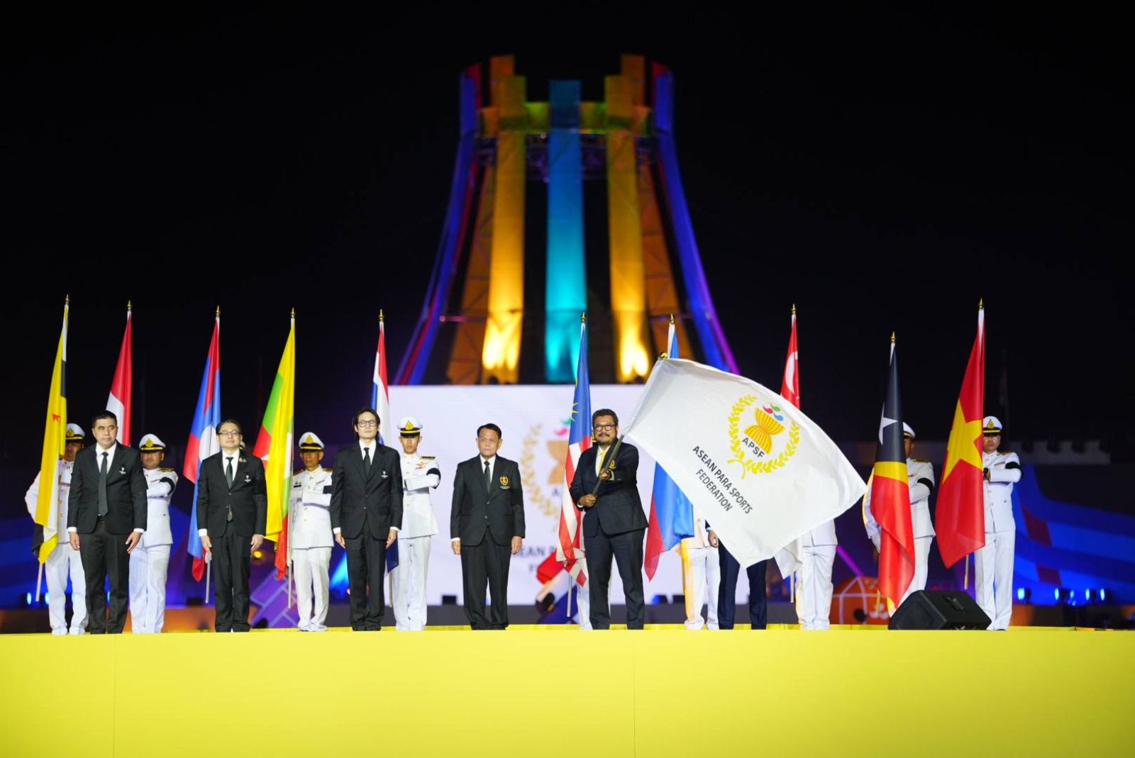ช่วงสำคัญของพิธีคือการ ส่งมอบธงอาเซียนพาราเกมส์ จากประเทศไทยไปยัง ประเทศมาเลเซีย เจ้าภาพการแข่งขันกีฬาอาเซียนพาราเกมส์ ครั้งต่อไป ถือเป็นการส่งต่อพลังใจ แรงบันดาลใจ และความมุ่งมั่นของนักกีฬาคนพิการในภูมิภาคอาเซียน