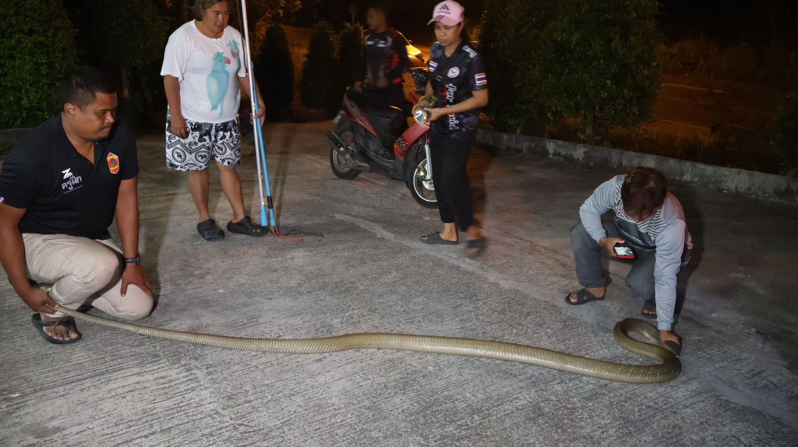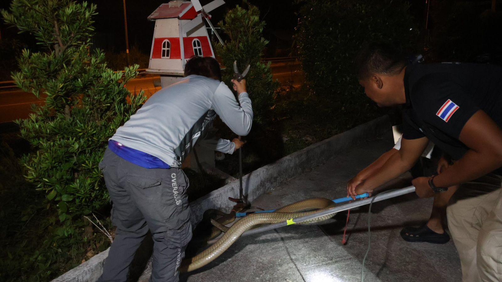 จ.ยะลา เจ้าของบ้านผวา จงอางยาว 4 เมตรอยู่คูน้ำ ปิดประตูเผ่นหนีขึ้นชั้น 2 ก่อนประสานเจ้าหน้าที่จับปล่อยคืนสู่ป่าธรรมชาติ
