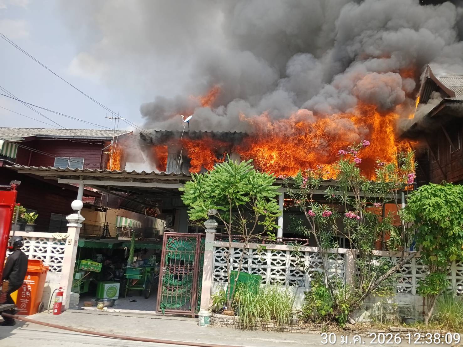เวลา 12.42 น. ขณะนี้เพลิงลุกไหม้เสียหายแล้วจำนวน 2 หลังคาเรือน อยู่ระหว่างเร่งรัดป้องกันการติดต่อลุกลาม