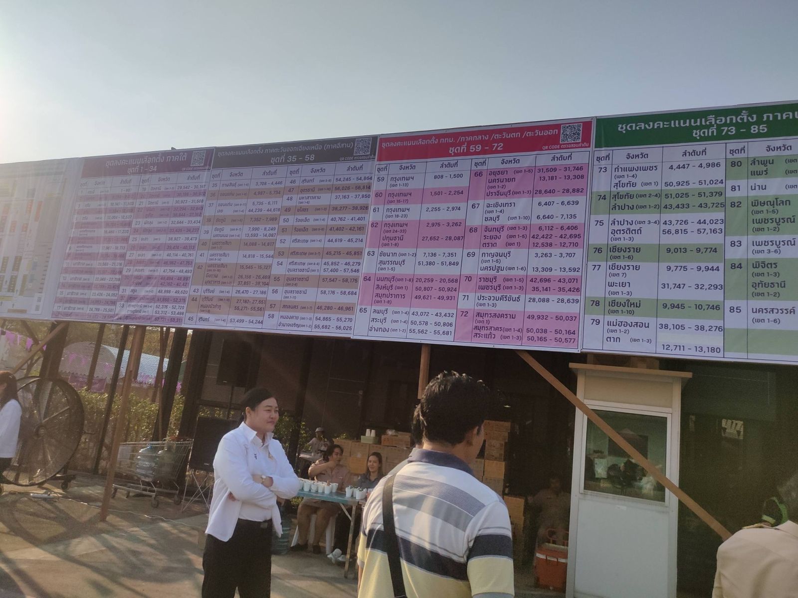 โดยสีม่วง คือ ตัวแทนภาคใต้ สีน้ำตาล ตัวแทนภาคตะวันออกเฉียงเหนือ สีชมพู ตัวแทนภาคกลาง และสีเขียว ตัวแทนภาคเหนือ ประชาชนสามารถสังเกตธงสัญลักษณ์สีที่ติดตั้งไว้เพื่อเข้าสู่ชุดลงคะแนนตามภูมิภาคของตน ซึ่งในพื้นที่เขตบางกะปิมีการจัดเตรียมเจ้าหน้าที่ไว้ทั้งหมด 86 ชุด เพื่อรองรับประชาชนที่ลงทะเบียนขอใช้สิทธิเลือกตั้งล่วงหน้าจำนวนกว่า 58,000 คน ซึ่งมากที่สุดในประเทศ