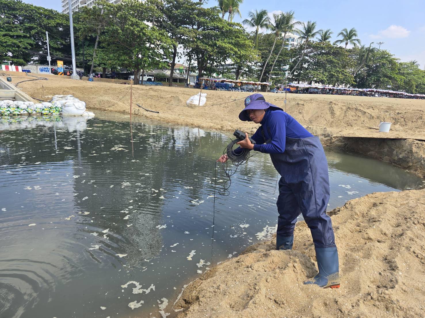 วันที่ 3 กุมภาพันธ์ 2569 นายสุชาติ ชมกลิ่น รองนายกรัฐมนตรีและรัฐมนตรีว่าการกระทรวงทรัพยากรธรรมชาติและสิ่งแวดล้อม สั่งการมายังอธิบดีกรมทรัพยากรทางทะเลและชายฝั่งหลัง ได้รับรายงานกรณีพบการปล่อยน้ำเสียลงสู่ทะเลบริเวณหาดจอมเทียน ตำบลหนองปรือ อำเภอบางละมุง จังหวัดชลบุรี ซึ่งอาจส่งผลกระทบต่อทรัพยากรทางทะเลในพื้นที่ใกล้เคียงจุดเกิดเหตุ จึงได้สั่งการให้เร่งลงพื้นที่ตรวจสอบและติดตามสถานการณ์อย่างใกล้ชิด โดย ดร.ปิ่นสักก์ สุรัสวดี อธิบดีกรมทรัพยากรทางทะเลและชายฝั่ง ได้มอบหมายให้ศูนย์วิจัยทรัพยากรทางทะเลและชายฝั่งอ่าวไทยฝั่งตะวันออก (ศวทอ.) และสำนักงานทรัพยากรทางทะเลและชายฝั่งที่ 2 จังหวัดชลบุรี (สทช. 2) ลงพื้นที่ตรวจสอบอย่างต่อเนื่อง