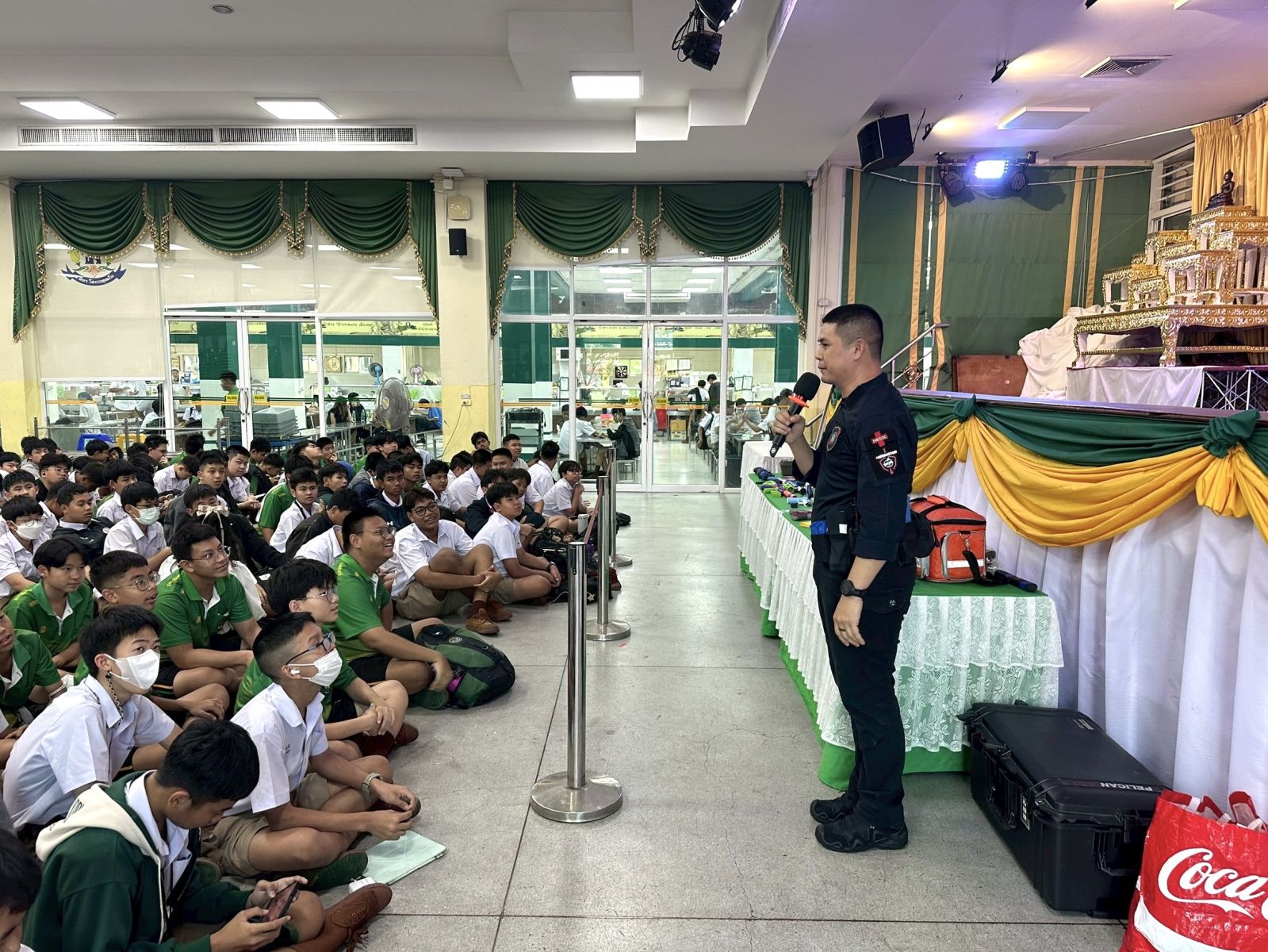 บช.ทท. ถ่ายทอดความรู้การรับมือสถานการณ์ฉุกเฉิน ให้นักเรียน ครู และบุคลากรทางการศึกษาโรงเรียนเทพศิรินทร์