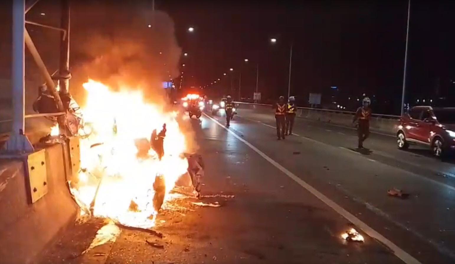 เวลา 00.35 น. วันที่ 4 กุมภาพันธ์ 2569 รับแจ้งว่า เกิดอุบัติเหตุและมีเพลิงไหม้รถยนต์ บนทางพิเศษด่วนศรีรัช ฝั่งขาออกมุ่งหน้าแจ้งวัฒนะ เลยทางขึ้นยมราช ช่วงเหนือ รพ.รามาฯ