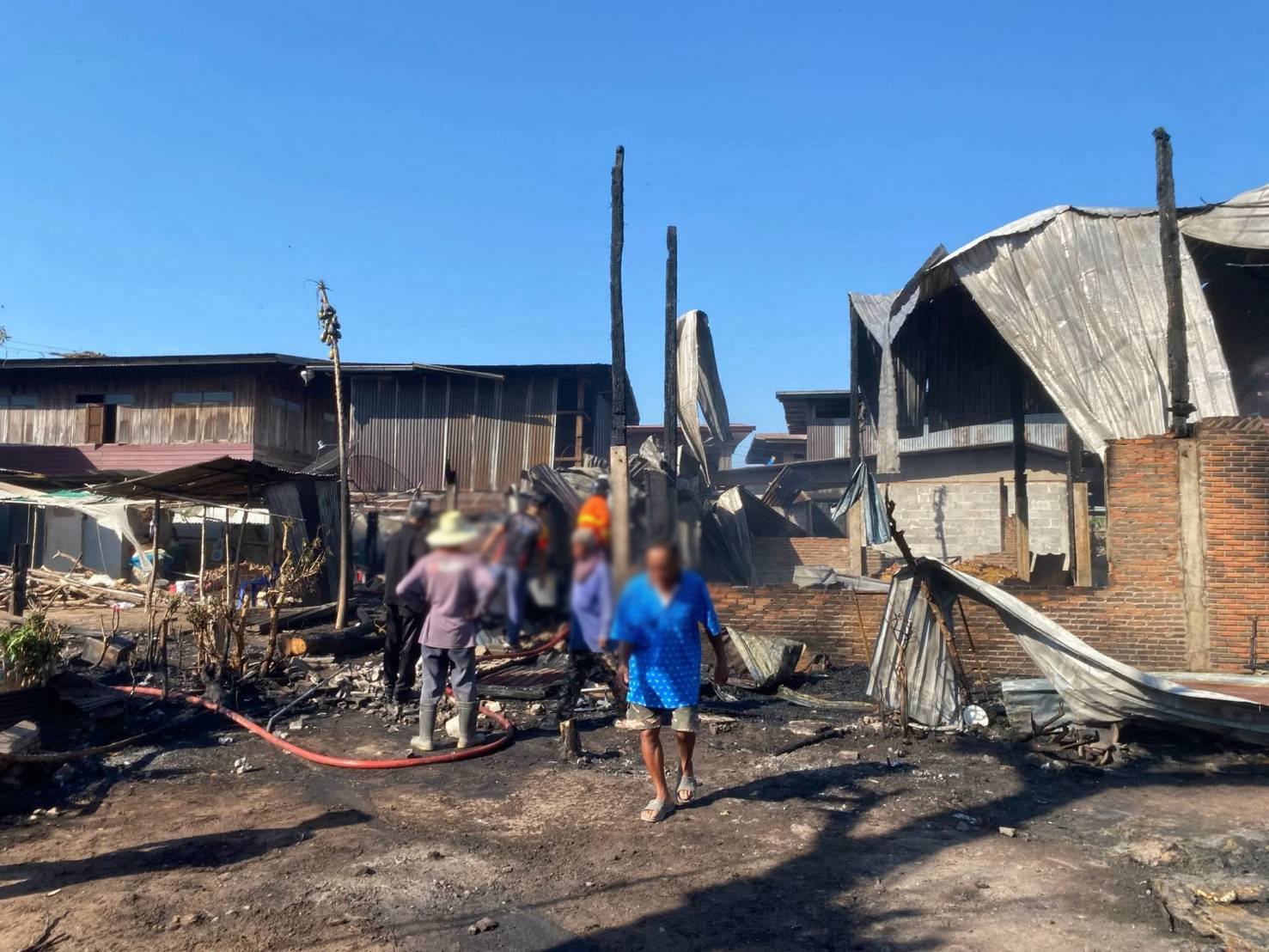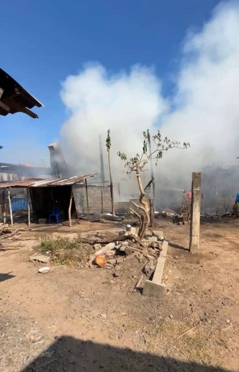เพลิงไหม้บ้านเรือนประชาชน ที่บ้านดินดำ แล้วลุกลามหลังข้างเคียงเสียหายวอด จ.ศรีสะเกษ
