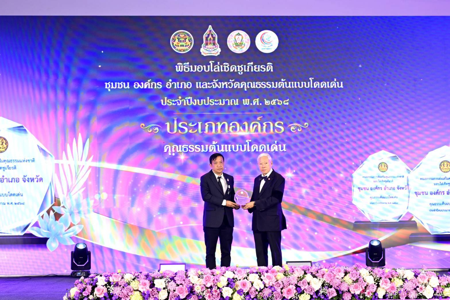สำหรับงานพิธีดังกล่าวจัดขึ้นเพื่อยกย่องเชิดชูเกียรติหน่วยงานและชุมชนที่มีผลงานโดดเด่น ในการขับเคลื่อนคุณธรรมในทุกระดับ และเพื่อสร้างขวัญกำลังใจ เสริมสร้างแรงจูงใจให้ทุกภาคส่วนเดินหน้าสร้างสภาพแวดล้อมที่เอื้อต่อการทำความดี ปลูกฝังคุณธรรมจริยธรรม ปรับเปลี่ยนกรอบความคิด ค่านิยม พฤติกรรมของคนในสังคมให้สามารถอยู่ร่วมกันได้อย่างสมานฉันท์และยั่งยืนต่อไป
