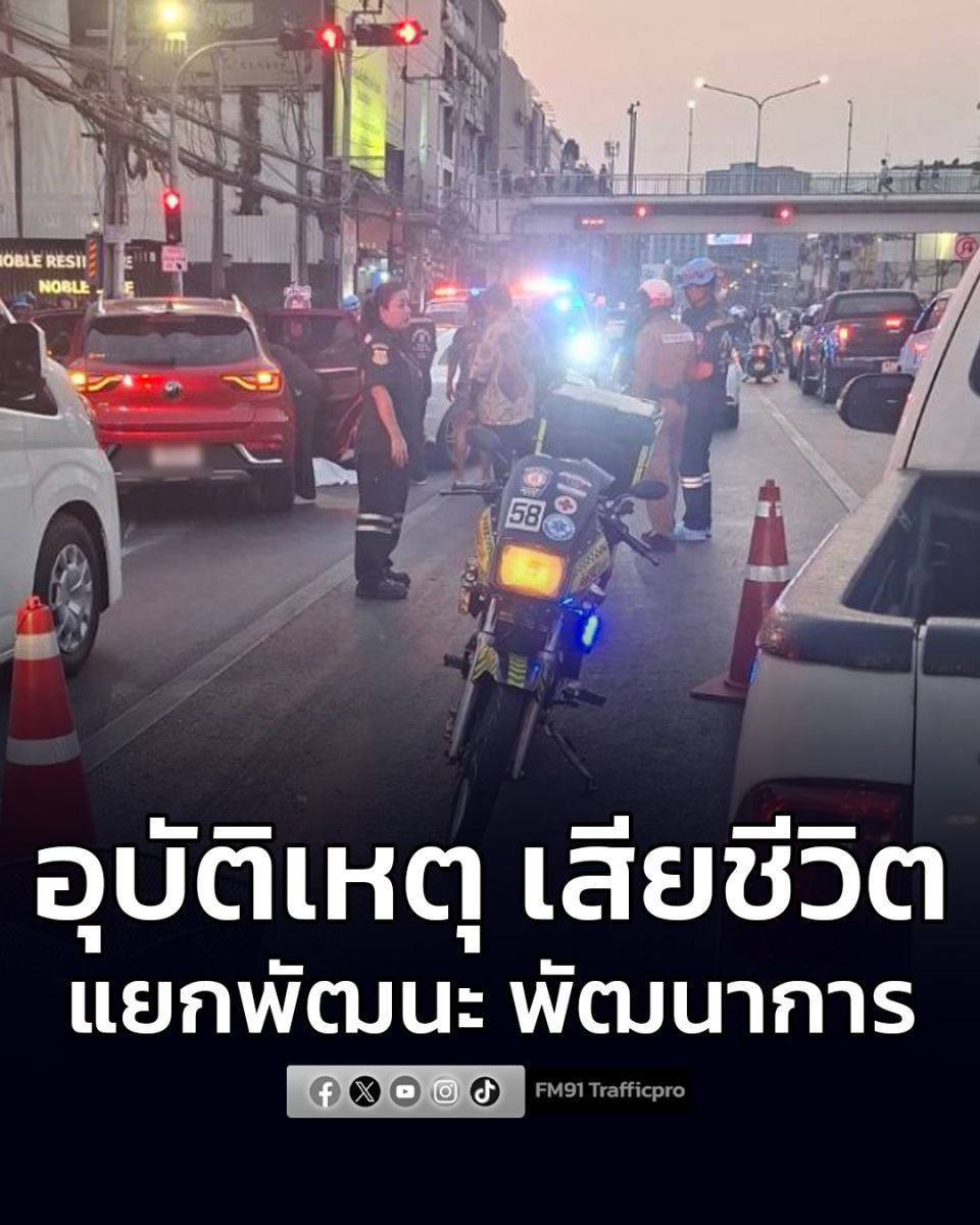 บริเวณแยกพัฒนะ (ถาวรธวัช) อุบัติเหตุ 4 คัน รถเก๋ง 2 คัน / รถจยย. 2 คัน มีผู้เสียชีวิต 1 ราย อยู่ระหว่างเคลื่อนย้าย