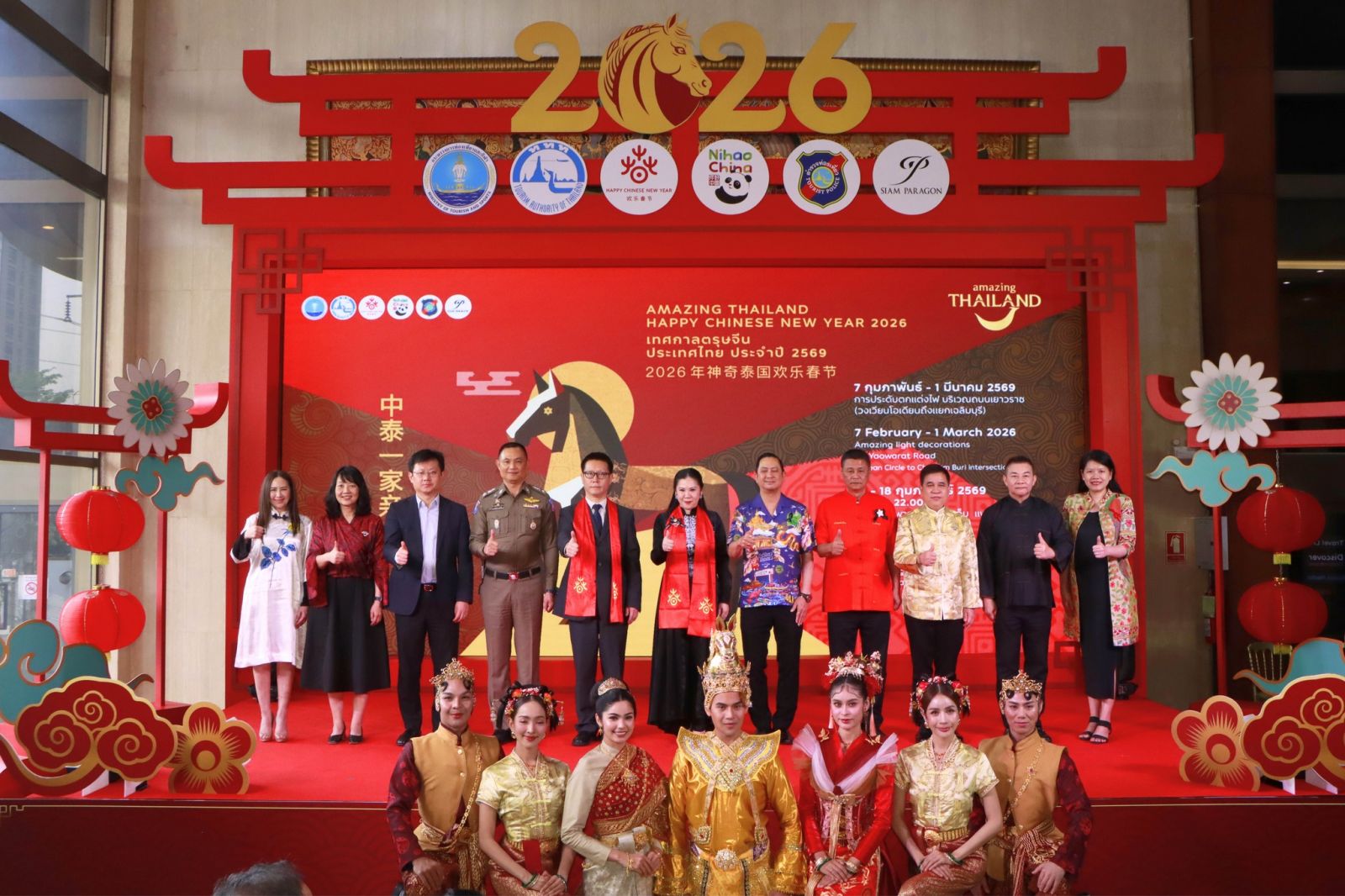 การท่องเที่ยวแห่งประเทศไทย (ททท.) จัดงานแถลงข่าวเทศกาลตรุษจีนประเทศไทย ประจำปี 2569 (Amazing Thailand Happy Chinese New Year 2026) ชวนฉลองปีม้าทองอย่างยิ่งใหญ่ ตอกย้ำมิตรภาพไทย–จีน 51 ปี กับ 2 พื้นที่จัดงานหลัก ได้แก่ กรุงเทพฯ และอำเภอหาดใหญ่ จังหวัดสงขลา พร้อมเสริมทัพสนับสนุนการจัดงานในนครสวรรค์และสุพรรณบุรี ทุกพื้นที่พร้อมใจกันสร้างบรรยากาศแห่งความสุขและความเป็นสิริมงคล ด้วยสีสันศิลปวัฒนธรรมอันงดงาม การประดับไฟตระการตา การแสดงทางวัฒนธรรมจากสาธารณรัฐประชาชนจีน และกิจกรรมสาธิตหลากหลาย สร้างแรงบันดาลใจดึงดูดนักท่องเที่ยวจากทั่วทุกสารทิศให้มาร่วมเฉลิมฉลองไปด้วยกัน โดยคาดว่าช่วงตรุษจีน 13-22 กุมภาพันธ์ 2569 จะมีนักท่องเที่ยวเดินทางทะลุ 3.5 ล้านคน สร้างรายได้กว่า 4.2 หมื่นล้านบาท โอกาสนี้ได้รับเกียรติจากนายหยาง เสี่ยวหลง ที่ปรึกษาฝ่ายวัฒนธรรมสถานเอกอัครราชทูตสาธารณรัฐประชาชนจีนประจำประเทศไทย นางสาวฐาปนีย์ เกียรติไพบูลย์ ผู้ว่าการ ททท. นายกองเอกเชษฐา ขาวประเสริฐ รองผู้ว่าราชการจังหวัดสุพรรณบุรี ว่าที่ร้อยตรีศราวุธ จันทวงศ์ รองผู้ว่าราชการจังหวัดนครสวรรค์ พลตำรวจตรี กฤษณ์ วาฤทธิ์ รองผู้บัญชาการตำรวจท่องเที่ยว ร่วมแถลงข่าวฯ ณ ห้องโถงธนะรัชต์ อาคาร ททท. สำนักงานใหญ่