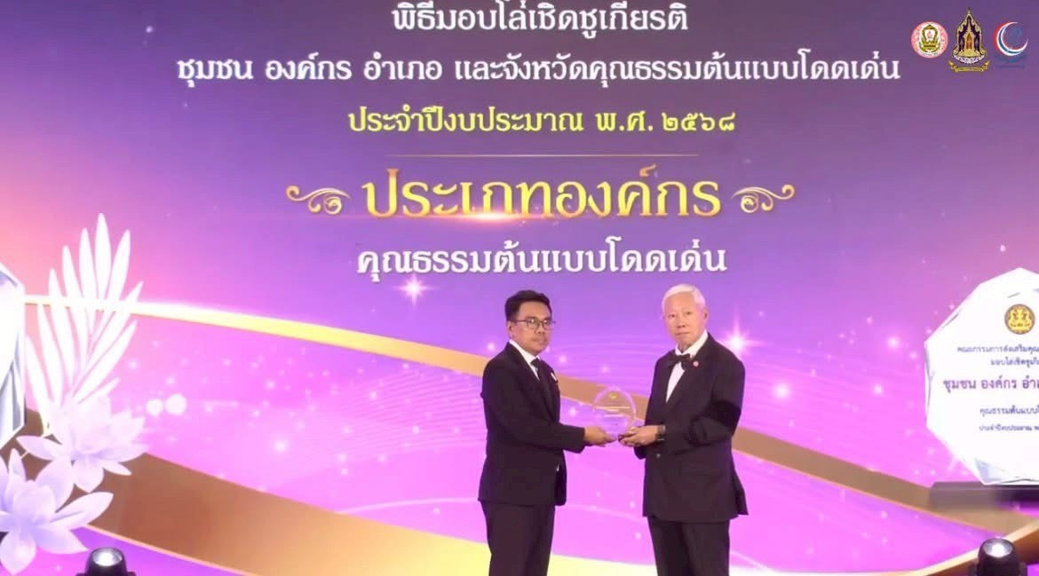 นายราเมศ ลิ่มสกุล วัฒนธรรมจังหวัดนครนายก พร้อมด้วยบุคลากรสำนักงานวัฒนธรรมจังหวัดนครนายก ชุมชน องค์กร และอำเภอคุณธรรมต้นแบบโดดเด่นของจังหวัดนครนายก เข้ารับมอบโล่เชิดชูเกียรติชุมชน องค์กร อำเภอ และจังหวัดคุณธรรมต้นแบบโดดเด่น ประจำปีงบประมาณ 2568 จากนายบวรศักดิ์ อุวรรณโณ รองนายกรัฐมนตรี ประธานพิธี ซึ่งในโอกาสนี้ ได้นำเครือข่ายชุมชนวัดเลขธรรมกิตติ์ เข้าร่วมจัดแสดงนิทรรศการ และสาธิตผลิตภัณฑ์ชุมชนอีกด้วย ณ อาคารหอศิลป์แห่งชาติ กระทรวงวัฒนธรรม เมื่อวันที่ 5 กุมภาพันธ์ 2569