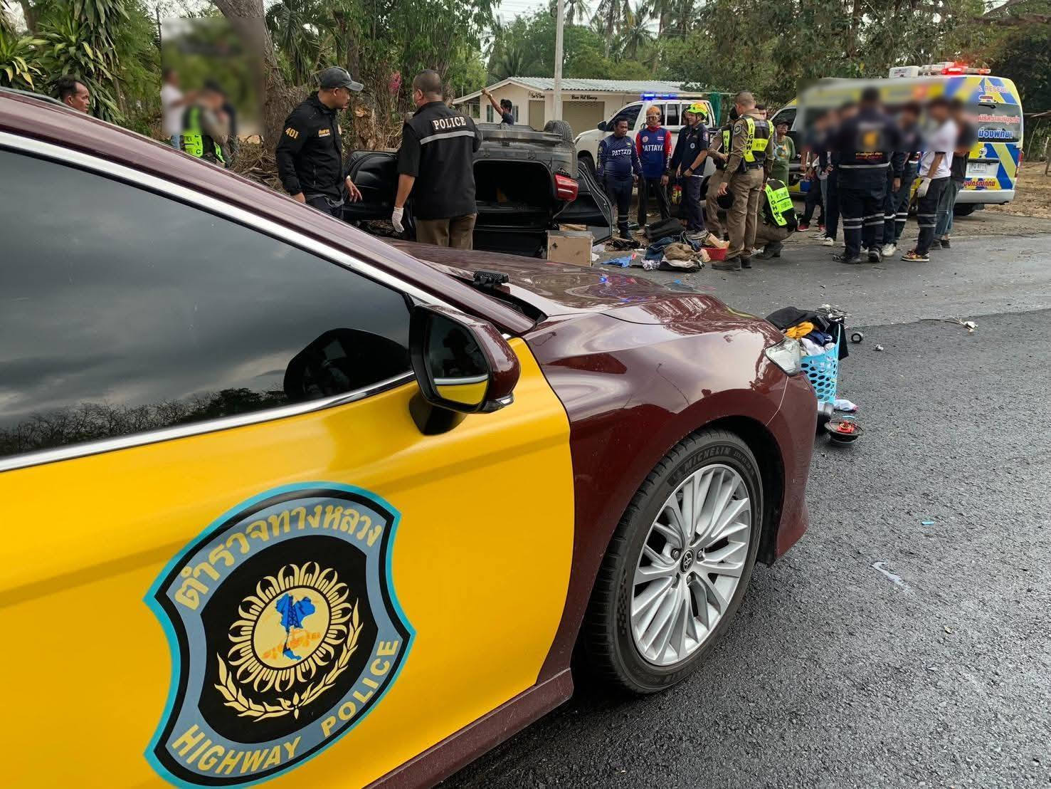 เมื่อเวลา 13.00 น. วันที่ 8 กุมภาพันธ์ 2569 พ.ต.อ.วราวุฒิ นิตยวัน ผู้กำกับการ สภ.ห้วยใหญ่ พร้อมด้วย พ.ต.ท.ปชารัก สุริยะ พนักงานสอบสวนงานจราจร รับแจ้งเหตุอุบัติเหตุรถยนต์เก๋งต้องสงสัยหลบหนีการตรวจค้นของเจ้าหน้าที่ตำรวจทางหลวง ก่อนเสียหลักชนต้นไม้ และมีผู้ได้รับบาดเจ็บอาการสาหัสติดอยู่ภายในรถ