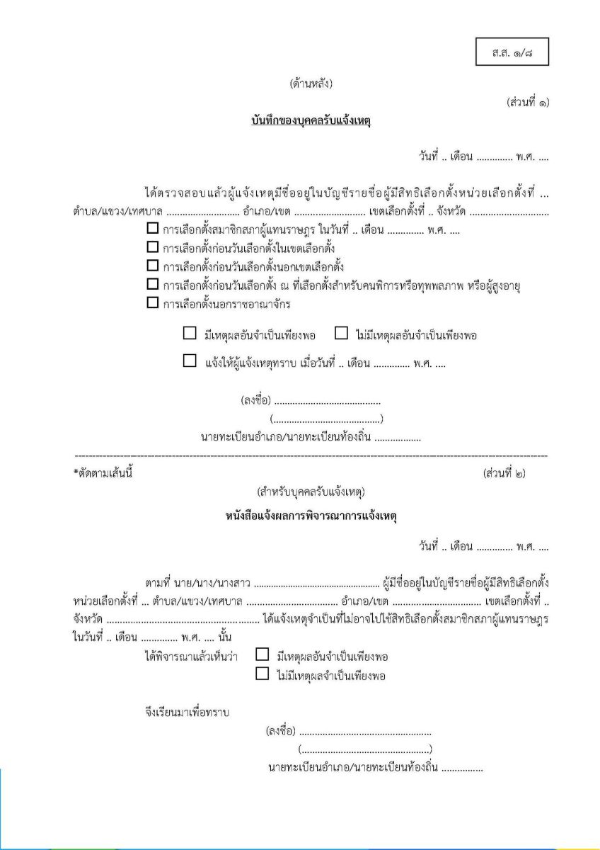 ผู้มีสิทธิออกเสียงสามารถแจ้งเหตุที่ไม่อาจไปใช้สิทธิออกเสียงได้