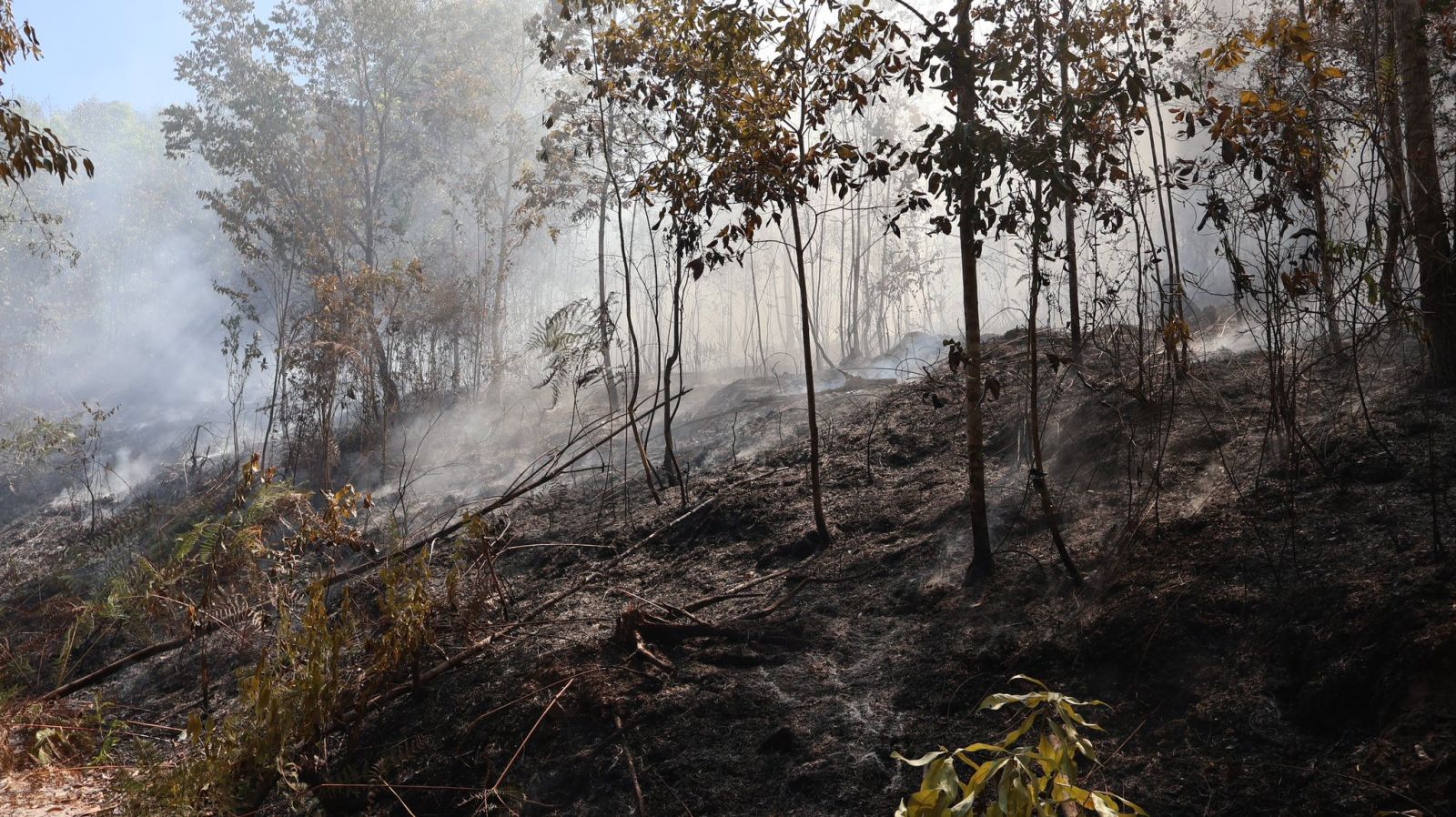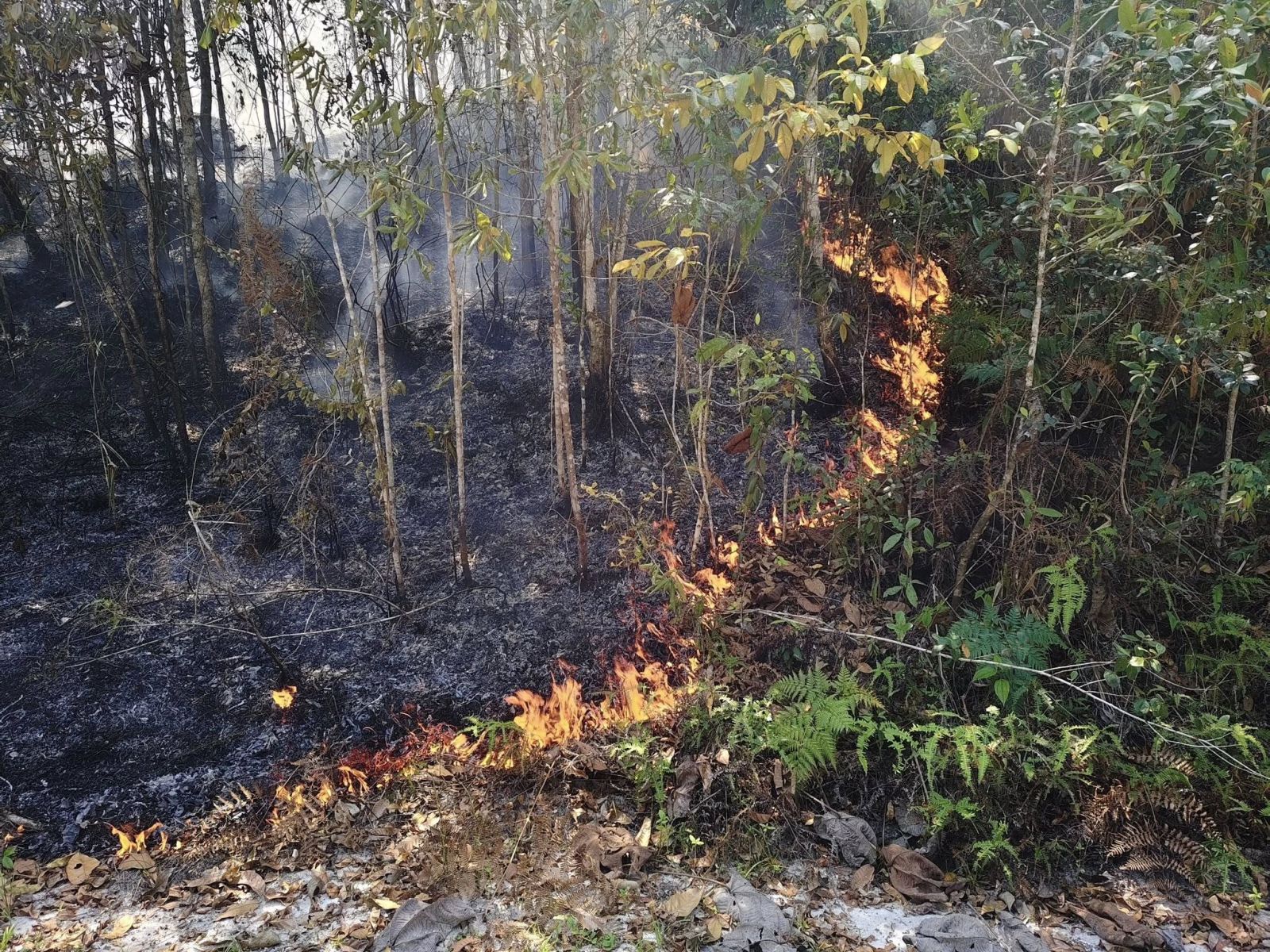 เบตง ไฟไหม้ป่าสวนยางพาราติดชายแดนไทยมาเลเซีย เสียหายกว่า 50 ไร่ เจ้าหน้าที่ ตชด. ทหาร อส. ชาวบ้านช่วยกันดับไม่ให้ลุกลามข้ามเข้าประเทศมาเลเซีย