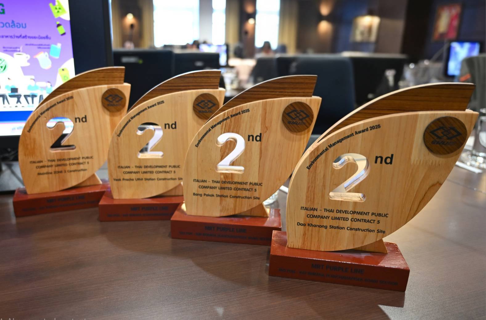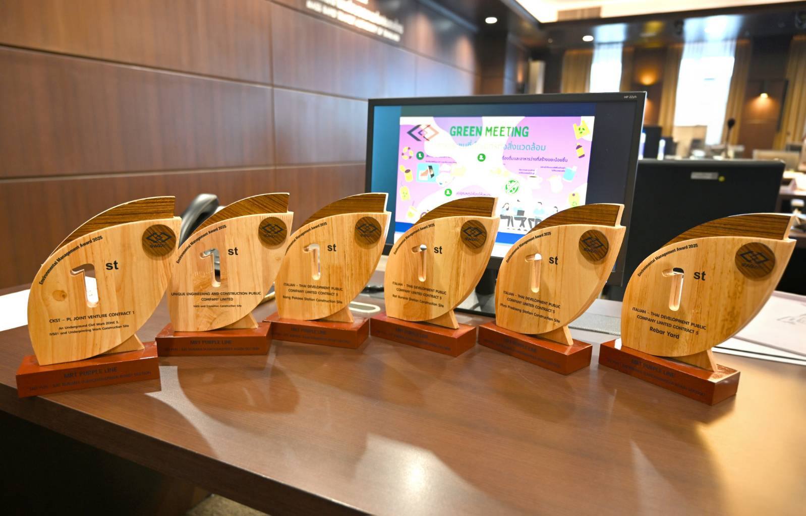 โดยผู้รับเหมาก่อสร้างที่ผ่านการตรวจสอบและมีการรักษามาตรฐานการปฏิบัติงานตามมาตรการด้านสิ่งแวดล้อมได้เป็นอย่างดีจนได้รับสัญลักษณ์ใบไม้สะสม จำนวน 24 ใบ จะได้รับรางวัลดีเด่น มีดังนี้
